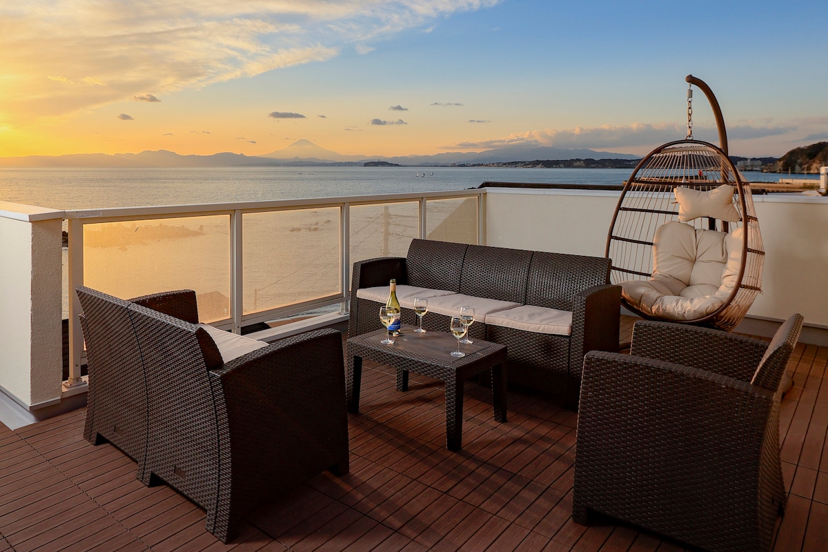 屋上から夕陽と富士山を望む|葉山の海辺に佇む特別な一室