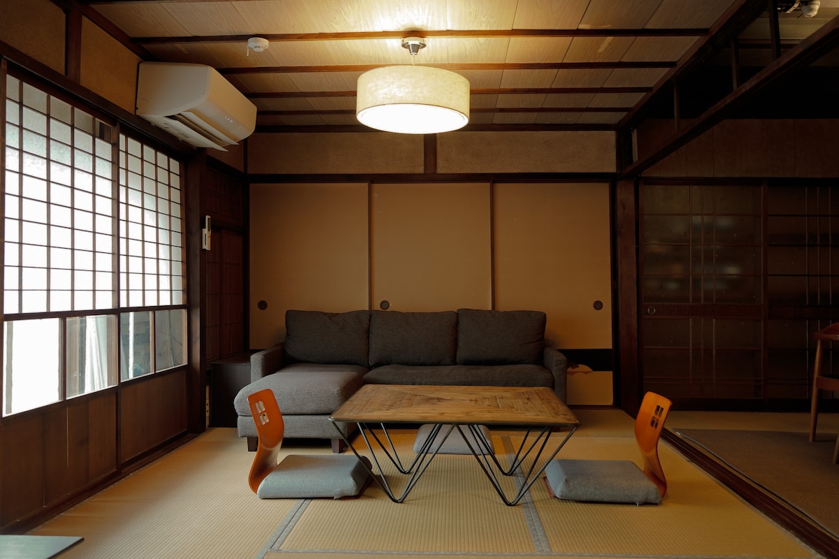 Πρόσφατα ανακαινισμένο διώροφο αρχοντικό σε στιλ Κιότο (machiya/町家) για 2-5 επισκέπτες με δύο υπνοδωμάτια, σαλόνι, νησιωτική κουζίνα και τραπεζαρία και μίνι κήπο, σε ήσυχες κατοικημένες περιοχές κοντά στον μεγαλύτερο παραδοσιακό δρόμο για ψώνια της πόλης. 10 λεπτά με τέσσερα δωρεάν ποδήλατα στο Χρυσό Περίπτερο (金閣寺) και τον ποταμό Καμογκάουα (鴨川). Εξαιρετική τοποθεσία για να εξερευνήσετε τον βορρά, συμπεριλαμβανομένων του ναού Kamigamo (上賀茂神社大徳寺), του ναού Daitoku-ji (), του Ασημένιου Περιπτέρου銀閣寺 (), του ναού Ryoan-ji (龍安寺) και του Αυτοκρατορικού Παλατιού του Κιότο (京都御所).