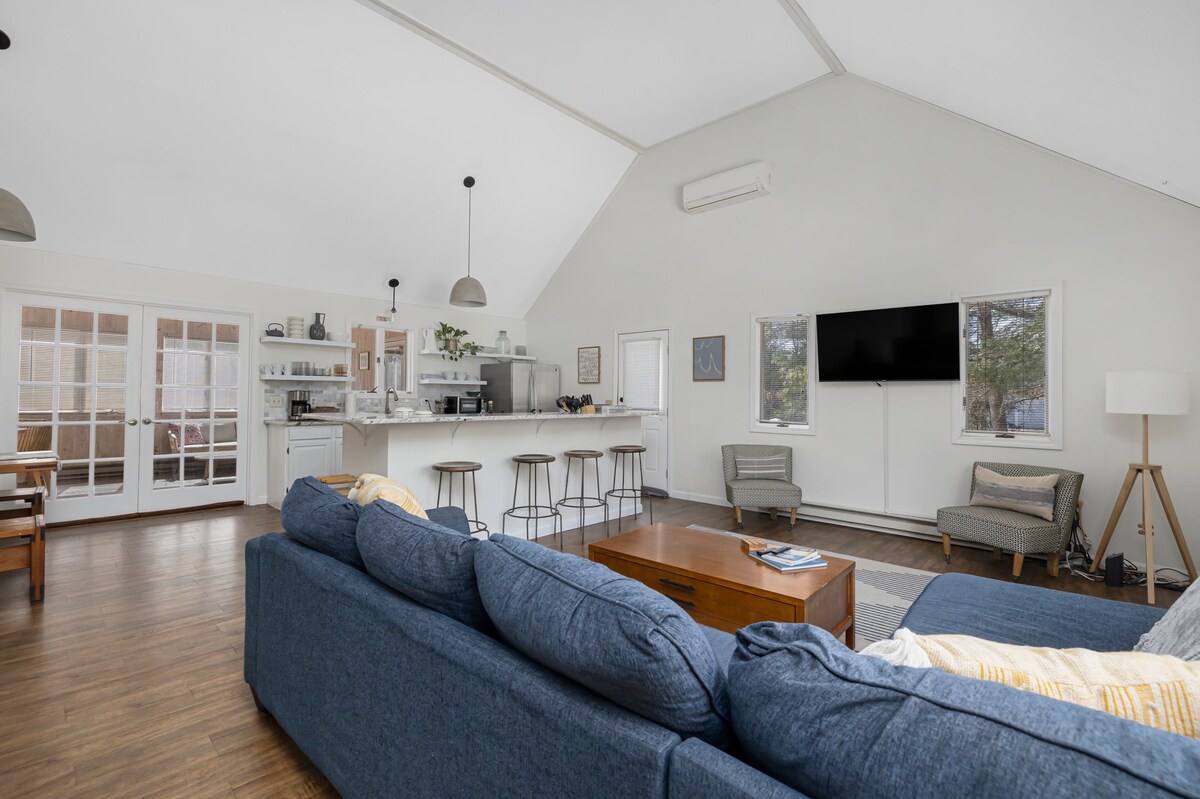 This peaceful and centrally-located place is a sunny and spacious modern one-bedroom cottage located in the heart of historic Wakefield. We're minutes from many RI beaches. Stroll downhill to a lovely park on Saugatucket River, then cross the charming footbridge into town. Here you'll find a variety of restaurants, cafes, and ice cream, plus excellent community theater, yoga, and interesting shops. Relax inside this light-filled home or sit out on the deck overlooking the gardens and town.