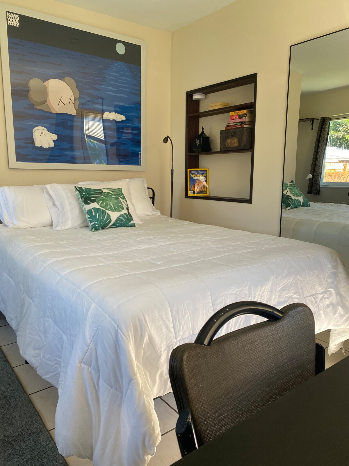 Όμορφο στούντιο με ιδιωτικότητα. Ιδιωτική είσοδος, 1 υπέρδιπλο κρεβάτι. Φούρνος μικροκυμάτων και μίνι ψυγείο. Σνακ καλωσορίσματος. Όλα τα προϊόντα περιποίησης, καθαρές λευκές πετσέτες, πιστολάκι μαλλιών, γρήγορο WIFI. Τηλεόραση επίπεδης οθόνης. Αυτό είναι το πλησιέστερο Airbnb στο αεροδρόμιο (3 λεπτά με το αυτοκίνητο), 12 λεπτά με τα πόδια από το κέντρο ενοικίασης αυτοκινήτων του αεροδρομίου και τον σταθμό του μετρό. Ιδανικό για ενδιάμεσες στάσεις καθώς και για διαμονές μεγαλύτερης διάρκειας. Υπέροχη γειτονιά! 15-20 λεπτά μακριά από τα περισσότερα αξιοθέατα του Μαϊάμι.