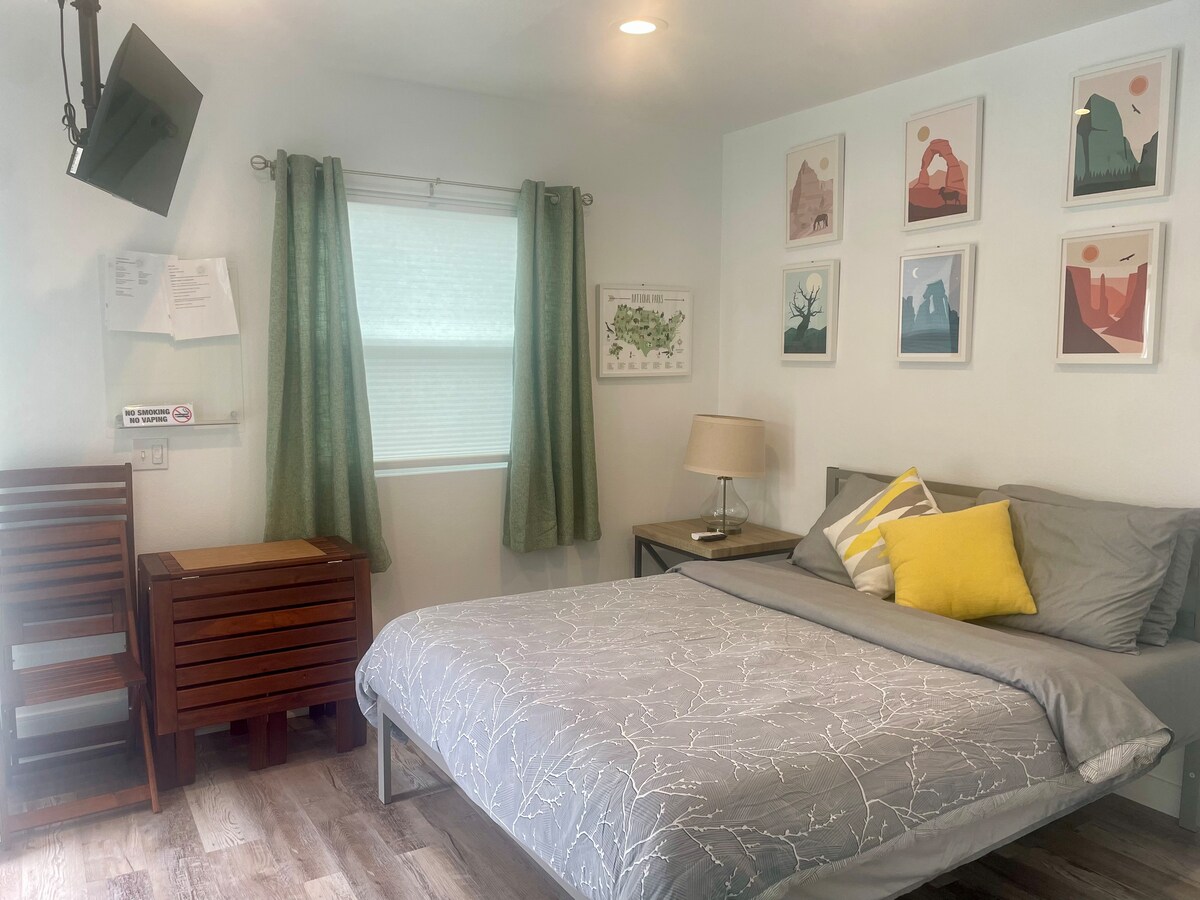 Καλωσορίσατε στο ολοκαίνουργιο ιδιωτικό στούντιο μας. Αυτό το μικροσκοπικό στούντιο είναι ιδανικό για έναν μοναχικό ταξιδιώτη. Έχει ιδιωτική είσοδο και βρίσκεται πίσω από ένα ιστορικό σπίτι του 1940 σε μια ήσυχη ασφαλή γειτονιά. Έχει ένα πεντακάθαρο μπάνιο και μια μικρή κουζίνα (χωρίς φούρνο). Η μικρή κουζίνα διαθέτει μίνι ψυγείο, φούρνο μικροκυμάτων, φούρνο τοστ, ηλεκτρικό βραστήρα και καφετιέρα μονής δόσης. Ο χώρος είναι για έναν μόνο επισκέπτη και είναι επιπλωμένος με ένα υψηλής ποιότητας μονό κρεβάτι, ένα τραπέζι πλήρους μεγέθους και μια συρταριέρα πλήρους μεγέθους.