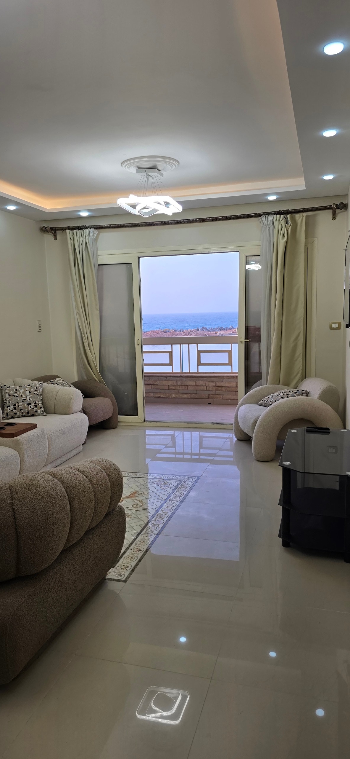 Η πολυτελής, ανακαινισμένη μεσογειακή απόδρασή σας στον 18ο όροφο στην Αλεξάνδρεια! 🌊🏖️ Φανταστείτε να ξυπνάτε με πανοραμική θέα στη θάλασσα από κάθε γωνιά του διαμερίσματός σας, ακόμα και από το κρεβάτι σας! Σχεδιασμένο για να μεγιστοποιήσει την εμπειρία σας στη θάλασσα, αυτό το ευρύχωρο διαμέρισμα είναι ιδανικό για οικογένειες. 3 υπνοδωμάτια με κλιματισμό, το καθένα με δύο κρεβάτια 120 εκ. Τραπεζαρία, χώρος υποδοχής και σαλόνι που προσφέρουν εκπληκτική θέα στη θάλασσα προς τα δυτικά, τα βόρεια και τα ανατολικά, ιδανικά για να απολαύσετε τη δροσερή αύρα και να απολαύσετε τον ζεστό ήλιο.