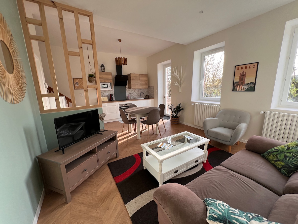 Κάτω μέρος της βίλας με βεράντα και κήπο, 5 κρεβάτια. Πρόσβαση σε Wi-Fi. Αυτόνομη άφιξη. Δωρεάν πάρκινγκ μπροστά από το σπίτι. Κοντινά καταστήματα. Στάση λεωφορείου. 5 λεπτά από το Ροντέζ: η παλιά πόλη, ο καθεδρικός ναός, τα μουσεία του, συμπεριλαμβανομένου και εκείνου που είναι αφιερωμένο στον Πιερ Σουλαζ. Στα γύρω μέρη: το οροπέδιο του Aubrac, οι λίμνες του Levézou, το Conques και το Vallon de Marcillac αλλά και οι φαράγγες του Tarn, το Millau και η περίφημη γέφυρα του .... Μονοπάτια πεζοπορίας ή ποδηλασίας (άμεση πρόσβαση από το σπίτι)