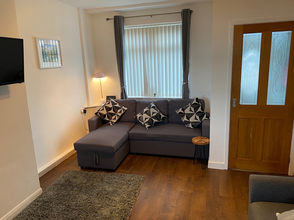 Well maintained & spotlessly clean Private residents car parking Ideal for holidays and business trips. Great days out locally for all ages High chair, stair gate etc. available upon request WIFI/SMART TV complimentary individual tea/coffee/sugar/milk etc. for ARRIVAL DAY & loaf in freezer plus butter & jam portions Convenience store around the corner Co-op supermarket in town Close to fish & chip shop Local Superhost to assist you if required * NO SMOKING/VAPING IN PROPERTY *