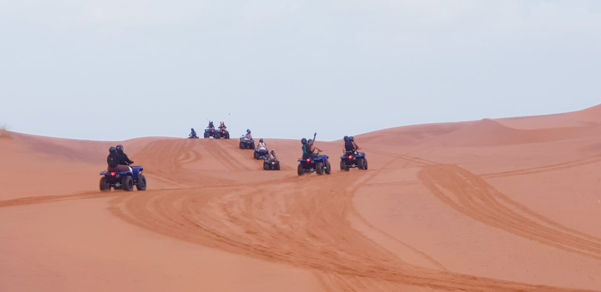 Ξεκινάμε την περιήγηση με καμήλα •Η περιήγηση ξεκινάει (4-5) μ.μ. Επιστρέφουμε γύρω στις 7-8 π.μ. την επόμενη μέρα. •Ο χώρος μας χωράει συνολικά 10 άτομα Προσφέρουμε επίσης: • ATV Quads •Ολοήμερη και νυχτερινή βόλτα με καμήλα (ξεκινάει στις 10 π.00 π.μ.) •2 διανυκτερεύσεις με καμήλα •Δωρεάν πάρκινγκ • Η βόλτα με καμήλα διαρκεί περίπου μία ώρα για να δείτε το ηλιοβασίλεμα και μετά πηγαίνετε στον χώρο κατασκήνωσης. • Sandboarding • Ώρα για τσάι • Δείπνο και πρωινό • Μουσική των Βερβέρων με τύμπανα γύρω από τη φωτιά (καμπίνα). • Ιδιωτική σκηνή στον καταυλισμό στην έρημο • Ανατολή και ηλιοβασίλεμα με καμήλες