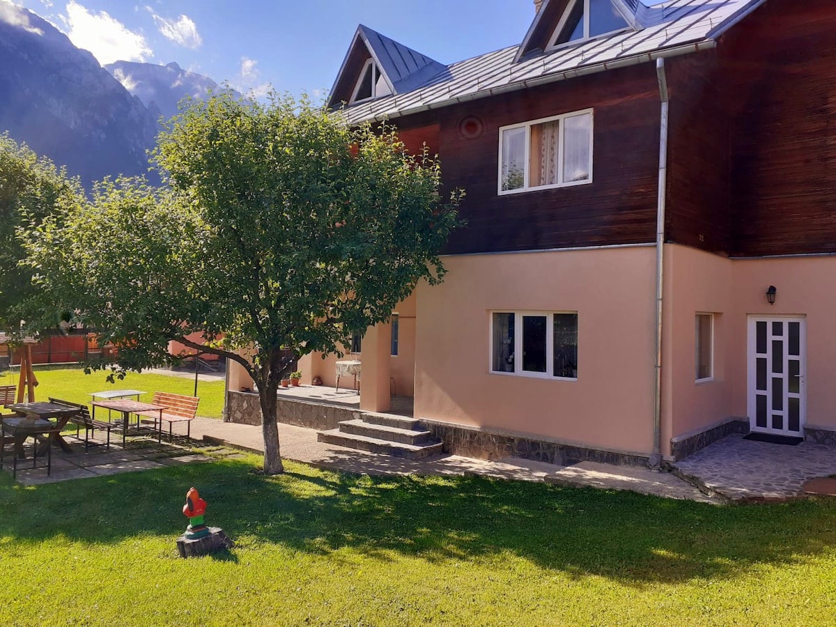 Βρίσκεται στο Μπουστένι, στους πρόποδες των βουνών Caraiman, με εκπληκτική θέα στο μνημείο του Σταυρού των Ηρώων , είναι μια κατάλληλη τοποθεσία για οικογενειακές διακοπές. Μια γενναιόδωρη αυλή, μόνο καλό παιχνίδι για παιδιά, μπάρμπεκιου, βεράντα για φαγητό , το θεωρούμε ιδανικό για να περάσετε μερικές μέρες στην οικογένεια. Για παρατεταμένη διαμονή άνω των 10 ημερών, μπορείτε να διαπραγματευτείτε την τιμή. Για τις αργίες Δεκεμβρίου, η ελάχιστη περίοδος είναι 4 διανυκτερεύσεις.