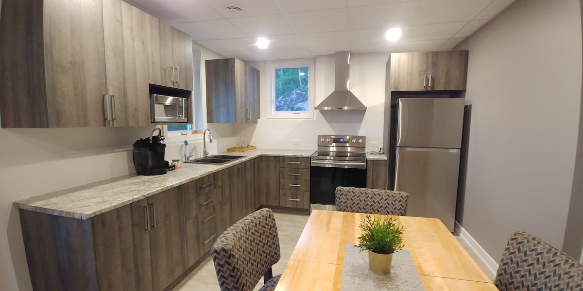 Νέο επιπλωμένο διαμέρισμα λίμνη σπίτι από μια ήσυχη και καθαρή λίμνη χωρίς μηχανοκίνητα σκάφη. Χαλαρώστε στο ήσυχο περιβάλλον ή εξερευνήστε τις ψυχαγωγικές δραστηριότητες του Wakefield και του Gatineau Park. Το υπόγειο διαμέρισμα walkout έχει άμεση θέα στη λίμνη. Έχετε τη δική σας θέση στάθμευσης και πόρτα εισόδου. Μπορείτε να πηγαινοέρχεστε όποτε θέλετε. Επειδή το σπίτι στη λίμνη περιβάλλεται από βουνά, η λήψη κινητών τηλεφώνων δεν είναι πολύ καλή. Wifi λειτουργεί καλά, αλλά είναι πιο αργή από ό, τι στην πόλη. Ταξινόμηση από CITQ - 2945331