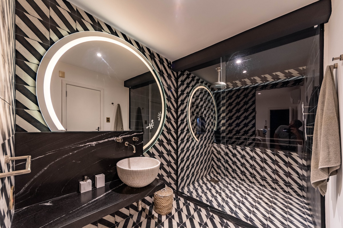 Ξυπνήστε με εκπληκτική θέα στο βουνό Cantagalo σε αυτό το ιδιωτικό καταφύγιο στον τελευταίο όροφο, 1,5 τετράγωνα από την παραλία στο "Copanema", όπου η Κοπακαμπάνα συναντά την Ιπανέμα. Ανακαινισμένο υπνοδωμάτιο με βεράντα, μπάρμπεκιου, εξωτερικό ντους και καθίσματα — ιδανικό για πρωινό καφέ ή caipirinhas το ηλιοβασίλεμα. Σε απόσταση λίγων βημάτων από παραλίες, εστιατόρια, νυχτερινή ζωή και το μετρό General Osório. Το γρήγορο Wi-Fi, ο κλιματισμός και ο χώρος εργασίας το καθιστούν ιδανικό για αναψυχή ή τηλεργασία.