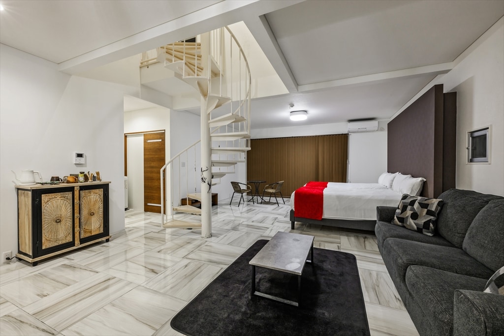 Ένα νέο καταφύγιο στην περιοχή των ξενοδοχείων στο Hiyane της πόλης της Οκινάουα, μια πόλη για ενήλικες. Είναι ένα πλήρως ιδιωτικό διαμέρισμα με ολόκληρο τον 4ο όροφο. Διαθέτουμε δωμάτιο με σοφίτα που είναι δημοφιλές στα παιδιά, καθώς και ιαπωνικό δωμάτιο με τατάμι των Ριούκγιου που είναι ασφαλές για τα μωρά. Η ανοιχτή βεράντα είναι εξοπλισμένη με ένα πολυτελές τζακούζι με LED. Μπορείτε να το απολαύσετε και το βράδυ. Μπορείτε επίσης να κάνετε μπάρμπεκιου στην ανοιχτή βεράντα. Η ενοικίαση της ψησταριάς μπάρμπεκιου γκαζιού κοστίζει 3000 γιεν την ημέρα. Νωρίς το πρωί σε μια ηλιόλουστη μέρα, μπορείτε να δείτε την υπέροχη ανατολή του ηλίου από τον Ειρηνικό Ωκεανό.