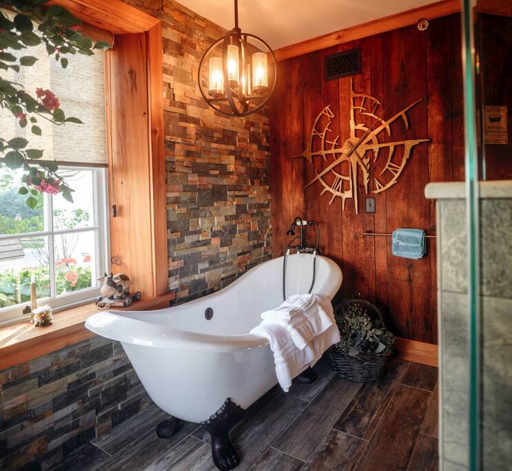 A romantic getaway, or a time for solitude, at the stunning Liberty Spring House located at Stone Gables Estate in Elizabethtown, Pennsylvania. Cultivate a tranquil state of mind by relaxing on the private veranda overlooking Lake Liberty. Queen bed, fire place, claw foot tub, and walk-in shower will provide much relaxation in addition to the plush robes for use during your stay. Close to: Hershey, Lancaster, Harrisburg