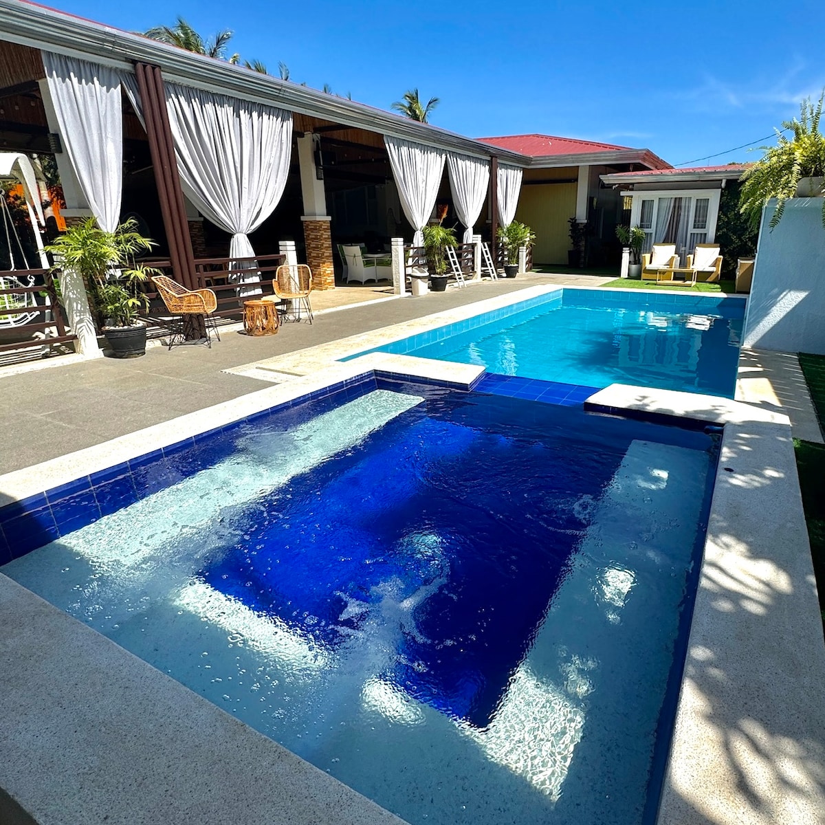 Welcome to Nordic A frame villa ! 🏡 Retreat to the A-frame villa convenientlyNestled at the border of Tagaytay and Silang . Wake up to stunning surroundings, with an IG-worthy garden and elegant interior decor that is sure to impress. Immerse yourself in luxurious amenities like the private pool and jacuzzi, perfect for families and groups. Heated pool and jacuzzi are available with additional fee. Wi-Fi powered by Starlink High-Speed Internet.