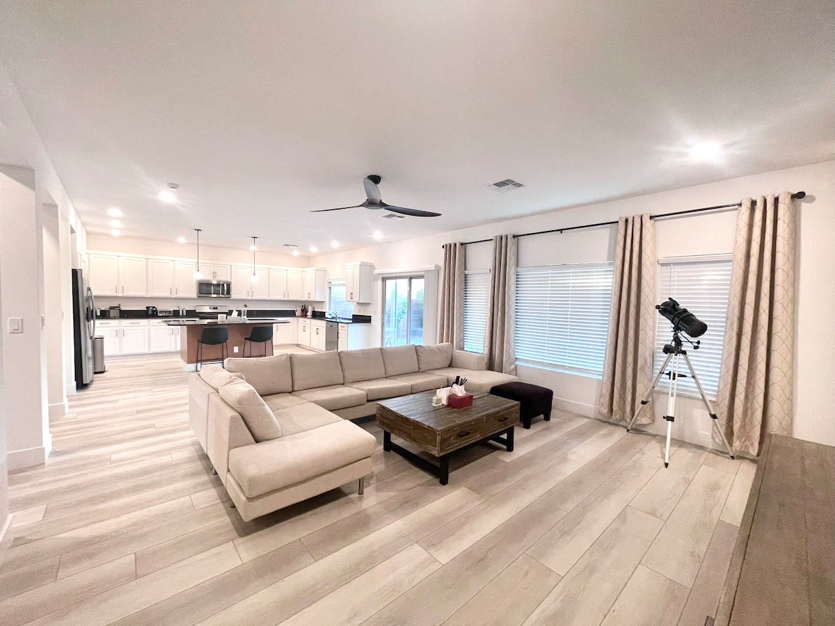 Καλώς ήρθατε στο μοντέρνο, πλήρως ανακαινισμένο σπίτι του 1900 τετραγωνικών ποδιών!. Γήπεδο μπάσκετ, γκολφ με πράσινο και ένα κατάστρωμα με θέα στη λωρίδα. Βυθισμένο καθιστικό. Το σπίτι χτίστηκε το 2019 και κανείς δεν έζησε σε αυτό μέχρι το 2022. Εκπληκτικά όμορφη θέα από την πίσω αυλή και το σπίτι. Πολύ ευρύχωρο και μπορεί να φιλοξενήσει άνετα έως 8 άτομα. Πισίνα με θέρμανση 25 ποδιών και τζακούζι. Ίντερνετ υψηλής ταχύτητας και βασική καλωδιακή συνδρομή. Κάθε υπνοδωμάτιο έχει τη δική της έξυπνη τηλεόραση και το σαλόνι διαθέτει μια τεράστια έξυπνη τηλεόραση.