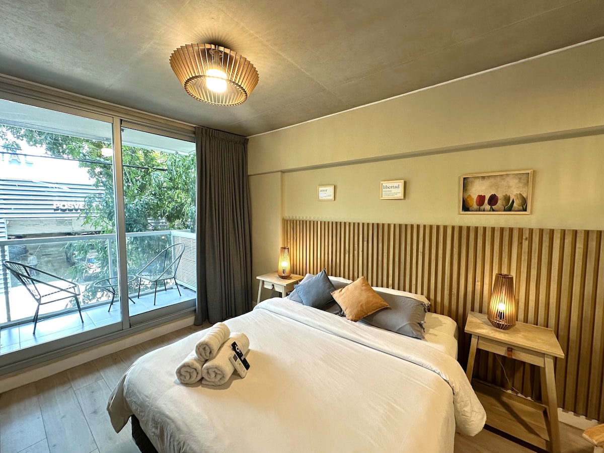 Πολυτελές στούντιο στην καρδιά του Παλέρμο Χόλιγουντ. Ένας νέος, ζεστός, πολύ φωτεινός χώρος με μια θεαματική ιδιωτική βεράντα με διπλό τζακούζι με ζεστό νερό, διαμορφωμένος και εξοπλισμένος με όλα όσα χρειάζεστε για να κάνετε τη διαμονή σας στο Μπουένος Άιρες μοναδική.