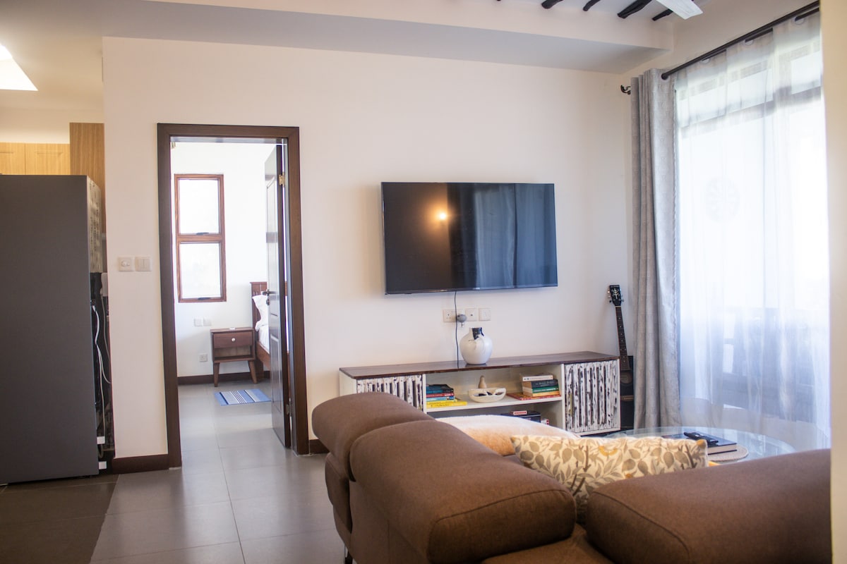 Ένα άνετο στούντιο διαμέρισμα με υπηρεσίες ξενοδοχείου (Bamburi) επιπλωμένο *Κατάλληλο για 2 ενήλικες και 1 παιδί ή 3 ενήλικες, επιπλωμένο με ένα μεγάλο διπλό κρεβάτι και ένα μονό κρεβάτι. *Περιλαμβάνεται καθημερινός καθαρισμός. *Τραπεζαρία με τέσσερις καρέκλες, καναπέ, τραπεζάκι σαλονιού. *Κλιματισμός *Τηλεόραση *Χρηματοκιβώτιο *Μπαλκόνι με δύο καρέκλες, τραπεζάκι. *Κουζίνα - ψυγείο, φούρνος μικροκυμάτων, βραστήρας, καφετιέρα, τοστιέρα, πιάτα, μαχαιροπίρουνα *Πρόσβαση σε παροχές - πισίνα, παιδική χαρά, μπαρ στην παραλία, εστιατόριο, γυμναστήριο, παραλία, πλυντήριο ρούχων *21 χλμ. από το Διεθνές Αεροδρόμιο Moi *26 χλμ. από το SGR Mombasa