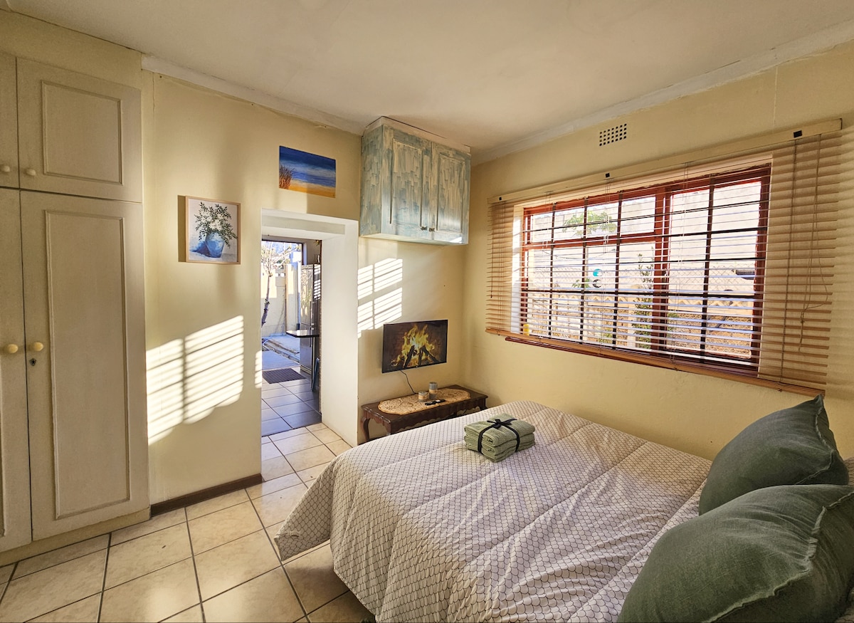 This little studio apartment is in a beautiful garden setting on the lower mountain slopes of Muizenberg. It has a bedroom, bathroom, living room and small kitchen with a one-plate conduction stove, and other essentials. The Muizenberg surfing beach is a 10-15 minute walk away. Beautiful coastal and mountain walks are easily accessible, as are local shops, restaurants and cafes. The popular Bluebird neighbourhood market is a great place to sample locally made food, beers and wine on a Friday.