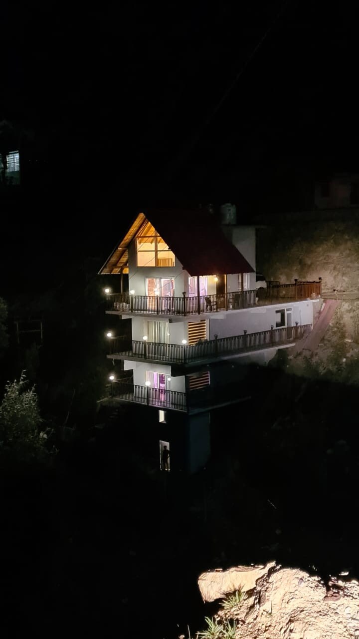 Perched on a peaceful hillside near Bhimtal within an estate, this hillside stay combines natural charm with modern comfort. With scenic views, it features a king-sized bed, wooden interiors, and a 32” TV; it’s designed for relaxation. Guests can savour sunset & sunrise vistas, unwind on the lawn with a BBQ & bonfire, or enjoy meals at the in-house dining. Close to Chota Kailash Dwar, trekking trails, Naukuchiatal (11.4 km) and the paragliding site (8.3 km), perfect for calm and adventure.