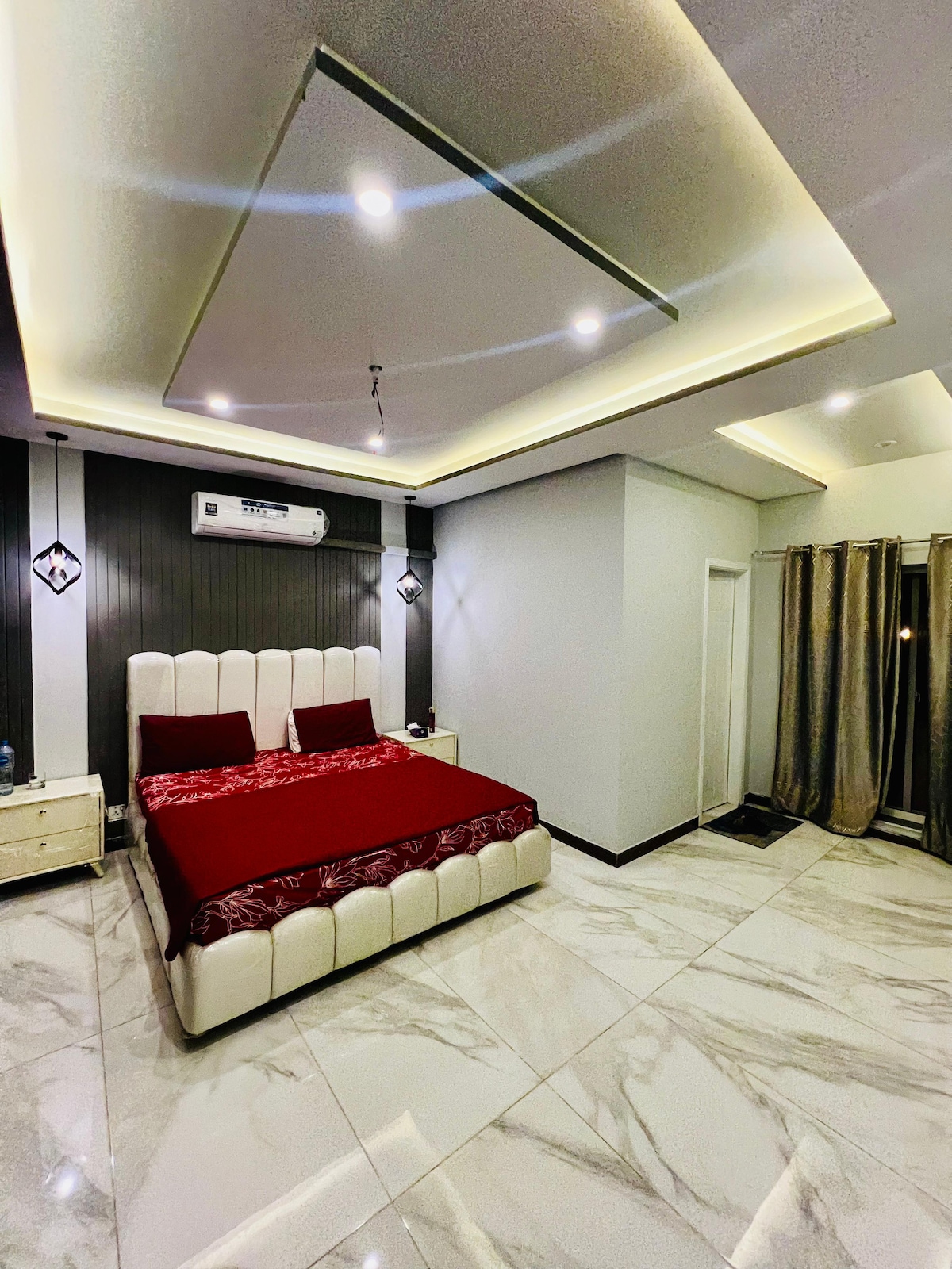 Escape to our serene bedroom oasis, perfectly suited for couples and small families seeking a relaxing getaway .Enjoy a comfortable night's sleep in our cozy bedroom . The apartment features a comfortable bed, a well-equipped kitchenette, and a fully smart tv, air conditioner, 24/7 internet, electric heating rod for hot water. Located in a prime location, you'll have easy access to nearby attractions such as imtiaz mall, Buch international hospital, cinema and restaurants .