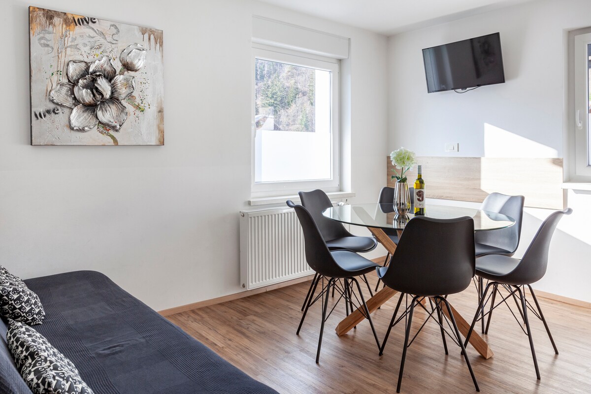 Διαμέρισμα επιπλωμένο σε αλπικό στιλ, που βρίσκεται στο ισόγειο. Το διαμέρισμα διαθέτει ιδιωτικό μπάνιο με ντους, κεντρική θέρμανση, καλά εξοπλισμένη κουζίνα με τραπεζαρία και καθιστικό με τηλεόραση επίπεδης οθόνης. Σε ένα υπνοδωμάτιο υπάρχει ένα μεγάλο διπλό κρεβάτι. Το διαμέρισμα περιλαμβάνει δωρεάν προϊόντα περιποίησης, κλινοσκεπάσματα και πετσέτες. Λάβετε υπόψη ότι δεν υπάρχουν επιπλέον κρεβάτια σε αυτόν τον τύπο δωματίου. Μέγεθος διαμερίσματος: 15 τ.μ.