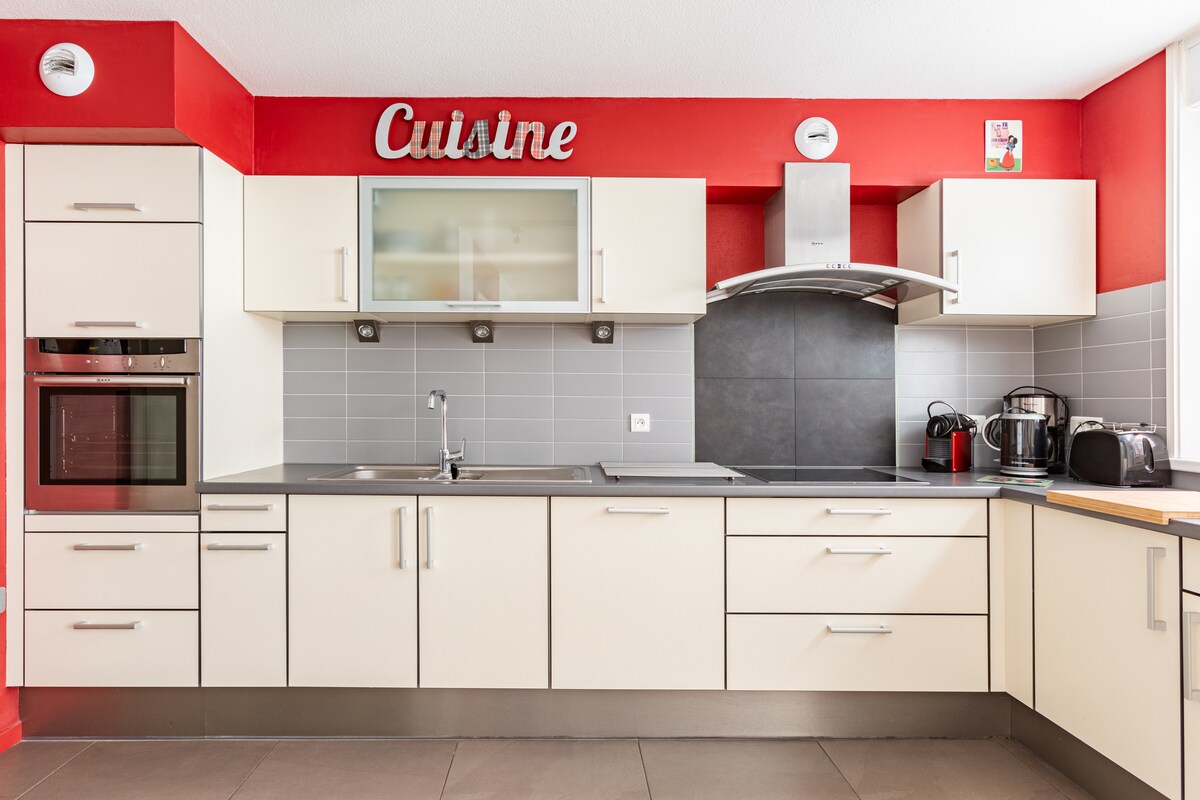 Καλώς ήρθατε στο Κολμάρ! Απολαύστε ένα ευρύχωρο και ζεστό διώροφο διαμέρισμα 65 τ. μ., ιδανικό για 4 επισκέπτες. Βρίσκεται στον 3ο όροφο ενός αυθεντικού μπλε πηλιορείτικου σπιτιού και συνδυάζει την παλιομοδίτικη γοητεία με τη μοντέρνα άνεση. Σε ιδανική τοποθεσία σε έναν ήσυχο δρόμο και μόλις 50 μέτρα από τις χριστουγεννιάτικες αγορές και την ιστορική καρδιά της πόλης, αυτό είναι το ιδανικό σημείο εκκίνησης για να ανακαλύψετε τη μαγεία του Κολμάρ με τα πόδια! Ο δωρεάν χώρος στάθμευσης απέχει 5 λεπτά με τα πόδια.