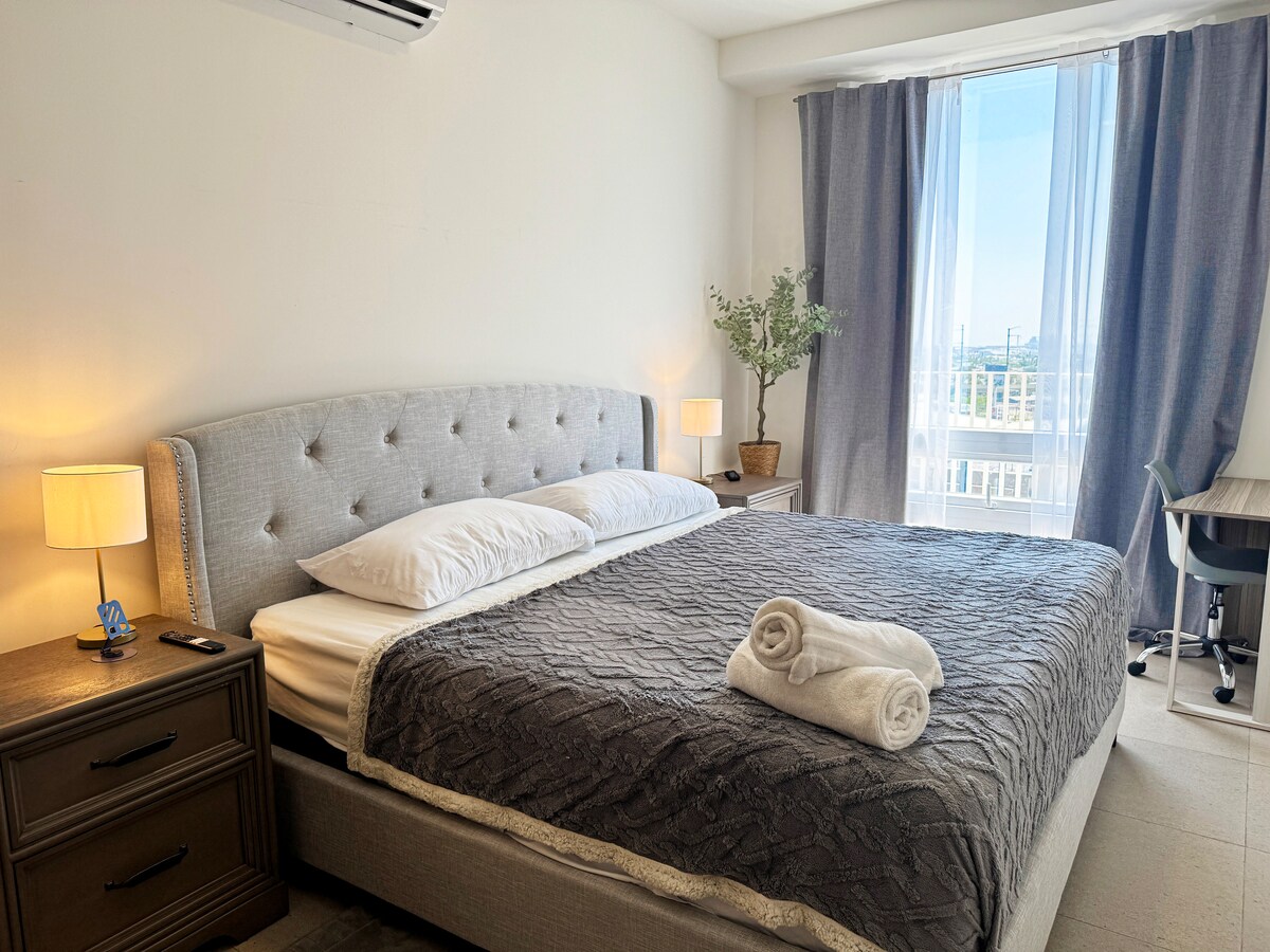✨ Ζήστε το Μοντερέι από ψηλά 🌆 Χαλαρώστε στο μοντέρνο διαμέρισμά μας με 2 υπνοδωμάτια/2 μπάνια στο Σαν Πέδρο με εκπληκτική πανοραμική θέα. Δύο queen size κρεβάτια, 2 πλήρη μπάνια, πλήρως εξοπλισμένη κουζίνα, κλιματιστικό, γρήγορο WiFi, πλυντήριο-στεγνωτήριο, πάρκινγκ και 24/7 ασφάλεια. Ιδανικό για επαγγελματικά, ιατρικά ή ψυχαγωγικά ταξίδια: λίγα λεπτά από κορυφαία νοσοκομεία, εκθεσιακό κέντρο, εμπορικά κέντρα και τα καλύτερα εστιατόρια. Ιδανικό για βραχυπρόθεσμες ή μακροπρόθεσμες διαμονές, συνδυάζει την άνεση του σπιτιού με την εμπειρία μπουτίκ που μόνο το Σαν Πέδρο μπορεί να προσφέρει.
