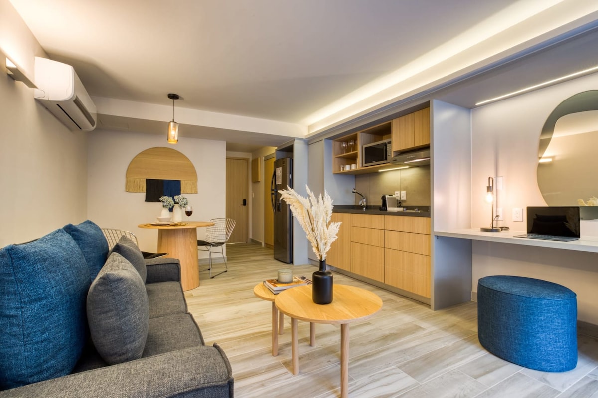 Τα μοντέρνα διαμερίσματα στούντιο της VIATO HOMES στο Nomad Living έχουν σχεδιαστεί για να μεγιστοποιούν την άνεση και τη λειτουργικότητα σε μια ανοιχτή, σύγχρονη διαρρύθμιση. Κάθε μονάδα διαθέτει έναν άνετο χώρο ύπνου, πλήρως εξοπλισμένο μπάνιο, πλήρως εξοπλισμένη μικρή κουζίνα και έναν κομψό χώρο διαβίωσης που είναι ιδανικός για επαγγελματίες ταξιδιώτες, ζευγάρια ή μεμονωμένους επισκέπτες. Οι επισκέπτες έχουν επίσης πρόσβαση σε παροχές του κτιρίου, όπως το γυμναστήριο, την πισίνα, τον χώρο συνεργασίας και τον χώρο μπάρμπεκιου, όλα μέσα σε ένα ασφαλές κτίριο με 24ωρη θυρωρεία και χώρο στάθμευσης.