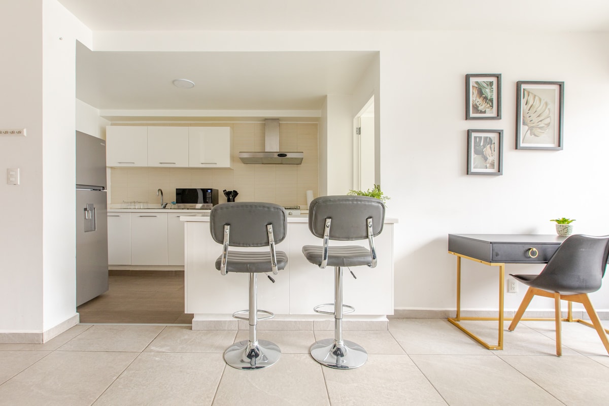 Διαμέρισμα με εξαιρετική τοποθεσία | WiFi + Χώρος στάθμευσης + Γυμναστήριο & Παροχές Functional depa with design ... thought for you! Τοποθεσία και εύκολη πρόσβαση, κοντά στα Plazas Comercialales, Financieras, Mercados y Servicios. Το διαμέρισμα βρίσκεται στο PB, η πρόσβαση είναι κάτω από έναν κοινό διάδρομο δίπλα σε έναν κήπο Novohispano. Απολαύστε μια ευχάριστη δεντρόφυτη θέα, με φυσικό φωτισμό από το χολ.