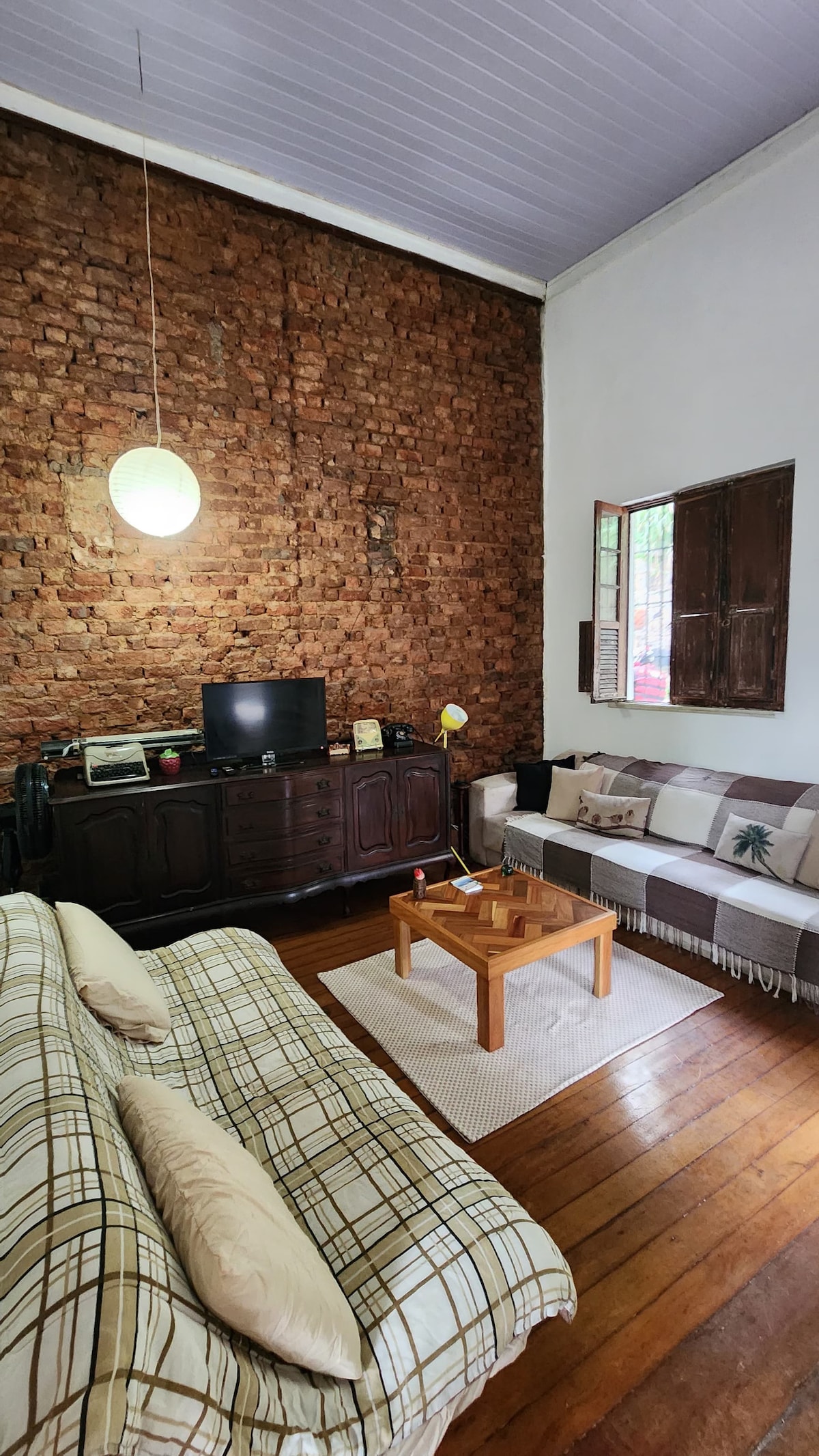 Departamento con mucha luz, encanto y comodidad, en la calle principal del histórico barrio de Santa Teresa, cerca de Lapa y del Centro de Rio. Dos dormitorios, uno con cama queen y otro con 2 camas single, escritorio y jardincito. Sábanas y toallas de excelente calidad. Cocina amplia y bien equipada, con lavarropas y todo lo necesario. Sala con vista abierta al verde. TV, wifi, aire acondicionado, cortinas blackout. Edificio tranquilo y familiar, con todo el estilo y la buena onda del barrio.
