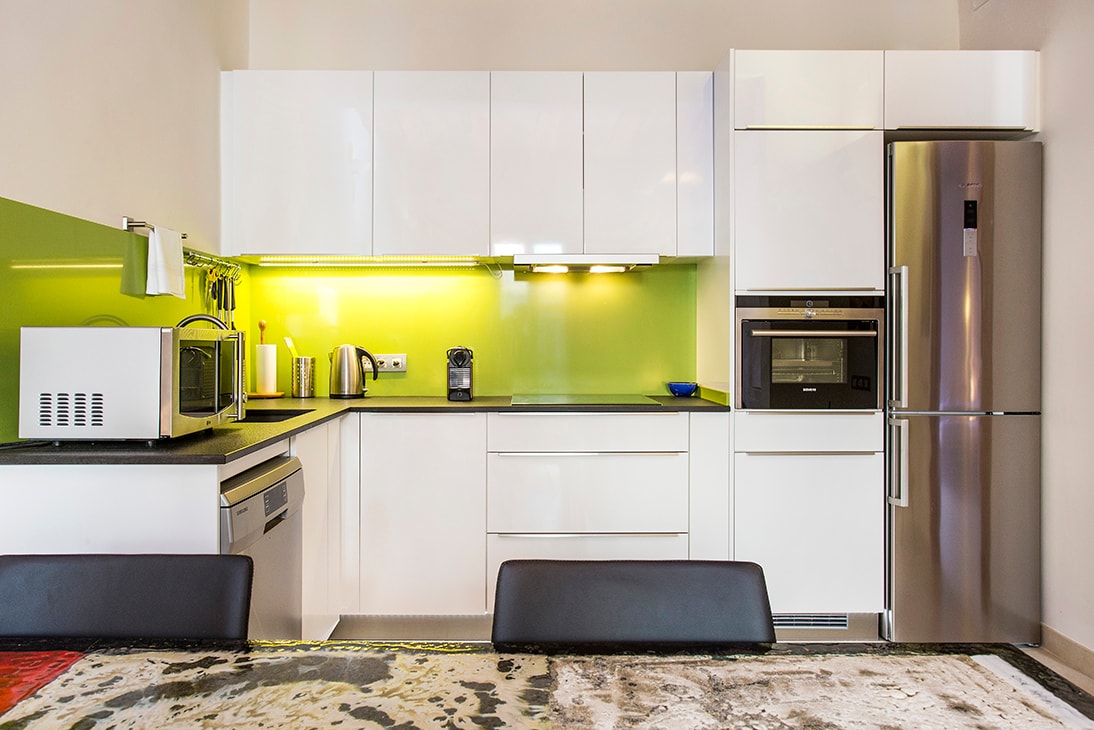 HUTB-003314 Fully equipped beautiful apartment just re-decorated in December 2021. Located on Rambla Catalunya, 5 minutes walk from Plaça Catalunya and Casa Batllo. Very sunny and quiet despite being in the center of Barcelona, it has a super fast internet connection and comfy table and chairs to work from home. Modernist building, renovated in late 2012.