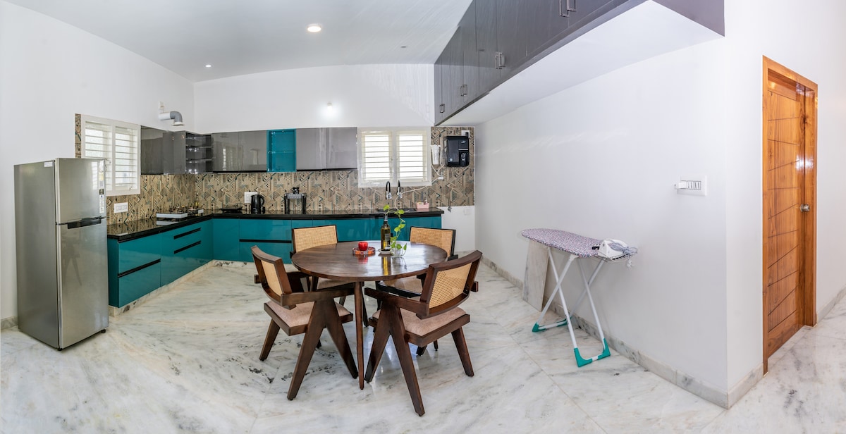 CozyNest Retreat – η γαλήνια απόδρασή σας με 2 υπνοδωμάτια και σαλόνι μόλις 5 χλμ. από τους εμβληματικούς κήπους Brindavan. Ιδανικό για οικογένειες, φίλους, ζευγάρια και εργαζόμενους εξ αποστάσεως. Το σπίτι μας διαθέτει: -1 Μεγάλο υπέρδιπλο κρεβάτι με άνετα μαξιλάρια και καθαρά κλινοσκεπάσματα -Έξυπνη τηλεόραση (40") με 15+ εφαρμογές OTT και DTH - WiFi υψηλής ταχύτητας – ομαλή ροή, εργασία ή παιχνίδι -Αρθρωτή κουζίνα (φούρνος, καθαριστής αέρα) -Μοντέρνο μπάνιο με ζεστό νερό. -Έξυπνη είσοδος με κλειδαριά – άφιξη ανά πάσα στιγμή, χωρίς προβλήματα. -Κλειστό συγκρότημα με κλειστό κύκλωμα ασφαλείας, κοντά στην Infosys, KRS. -Refenities