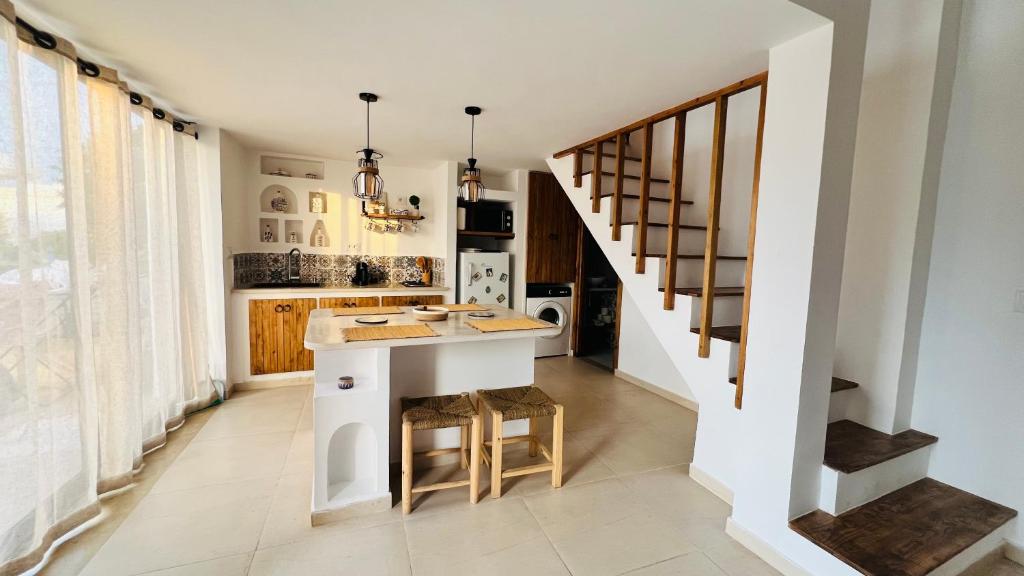 Détendez-vous dans ce logement calme et élégant. Sa proximité avec une mer exceptionnelle, un barrage collinaire et une montagne en fait un emplacement unique pour des vacances inoubliables. La maison est toute équipée (plaque à induction, machine à laver, climatisation,...) pour un confort optimal. Le logement dispose d'un accès indépendant et offre la possibilité d'utiliser la piscine de la villa avec les habitants du rez-de-chaussée