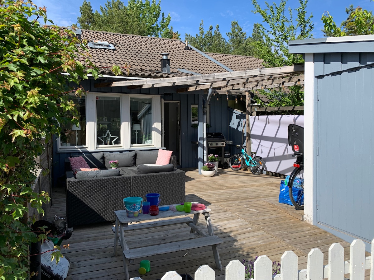 Ένας ιδανικός χώρος διαμονής αν θέλετε να μείνετε κοντά στο κέντρο της πόλης σε μια ήρεμη γειτονιά, με έναν μικρό κήπο. Το Södermalm απέχει 5 λεπτά με το λεωφορείο και το κέντρο της πόλης απέχει 15 λεπτά με το πλοίο. Το σπίτι διαθέτει δύο ορόφους, μπάνια σε κάθε όροφο. Το ισόγειο διαθέτει ευρύχωρο σαλόνι που συνδέεται με την τραπεζαρία και την κουζίνα. Μια ωραία βεράντα στην πίσω αυλή, ιδανικό μέρος για πρωινό σε μια ηλιόλουστη ημέρα. Επίσης, υπάρχει τραπεζαρία μπροστά, με ήλιο το απόγευμα.