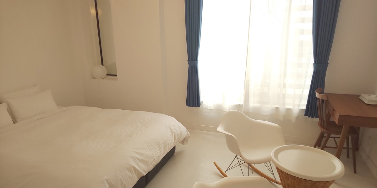 思い出に残る天草旅行は、スタイリッシュで ユニークなこちらの宿からはじまります。 天草諸島は九州本土と天草五橋で結ばれ、 北は長崎県、南は鹿児島県と フェリーでつながる島です。 自然豊かなこの天草のほぼ真ん中 有明町大島子(アリアケマチオオシマゴ)に 私達のホテルはあります。 天草のあらゆる観光地、市街地への アクセスのしやすさはもちろんの事 九州をめぐる旅の拠点としても 大変便利な立地にあります。 白い壁にブルーのアンティークの玄関が 皆様のお越しをお出迎えします。 お食事はこちらから車で6分程の市街地¨本渡¨の飲食店をご案内しています。 お食事をお持ち込みもOKです。 歩いて200mの場所にファミリーマートがあります。 お車は無料駐車が可能です。 自転車、バイク旅の方々には安心して 愛車を駐車できるシャッター付きガレージを備えています。 九州・天草観光やビジネスでの宿泊に。 天草を訪れるあらゆる旅人たちの ホテルです。