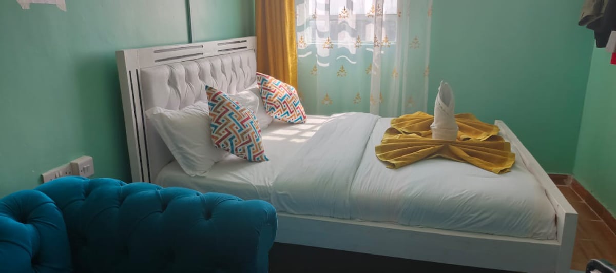 Ιδανικό για ζευγάρια ή μεμονωμένους ταξιδιώτες! Χαλαρώστε σε αυτό το κομψό και άνετο στούντιο λίγα λεπτά από το Buffalo Mall Naivasha. Ιδανικός για επαγγελματίες ή τουρίστες, ο χώρος φιλοξενεί άνετα 2 επισκέπτες, προσφέροντας μια ήσυχη απόδραση με μια ζεστή, σύγχρονη πινελιά. Είτε συμμετέχετε σε ένα συνέδριο, απολαμβάνετε μια ρομαντική απόδραση ή απλά περνάτε από την πόλη, θα λατρέψετε την εύκολη πρόσβαση σε καταστήματα, εστιατόρια και τα γραφικά διαμάντια της Naivasha, ενώ χαλαρώνετε με άνεση και ιδιωτικότητα.