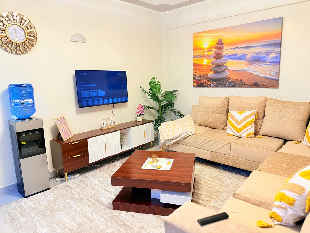 Ζήστε το τέλειο μείγμα αστικής κομψότητας και άνεσης σε αυτό το εξαιρετικό διαμέρισμα που βρίσκεται μόλις 5 χιλιόμετρα μακριά από το Nakuru City CBD και 7 χιλιόμετρα από το Εθνικό Πάρκο Nakuru. Το διαμέρισμα είναι εξοπλισμένο με internet υψηλής ταχύτητας, έξυπνη τηλεόραση και ένα μεγάλο πολύ ελαστικό κρεβάτι από αφρώδες υλικό για να εξασφαλίσει έναν άνετο ύπνο. Μπορείτε επίσης να απολαύσετε μια πλήρως εξοπλισμένη κουζίνα με φούρνο μικροκυμάτων, ψυγείο και κουζίνα αερίου, καθώς και ένα πλυντήριο ρούχων που μπορεί να χειριστεί φορτία 7 κιλών.