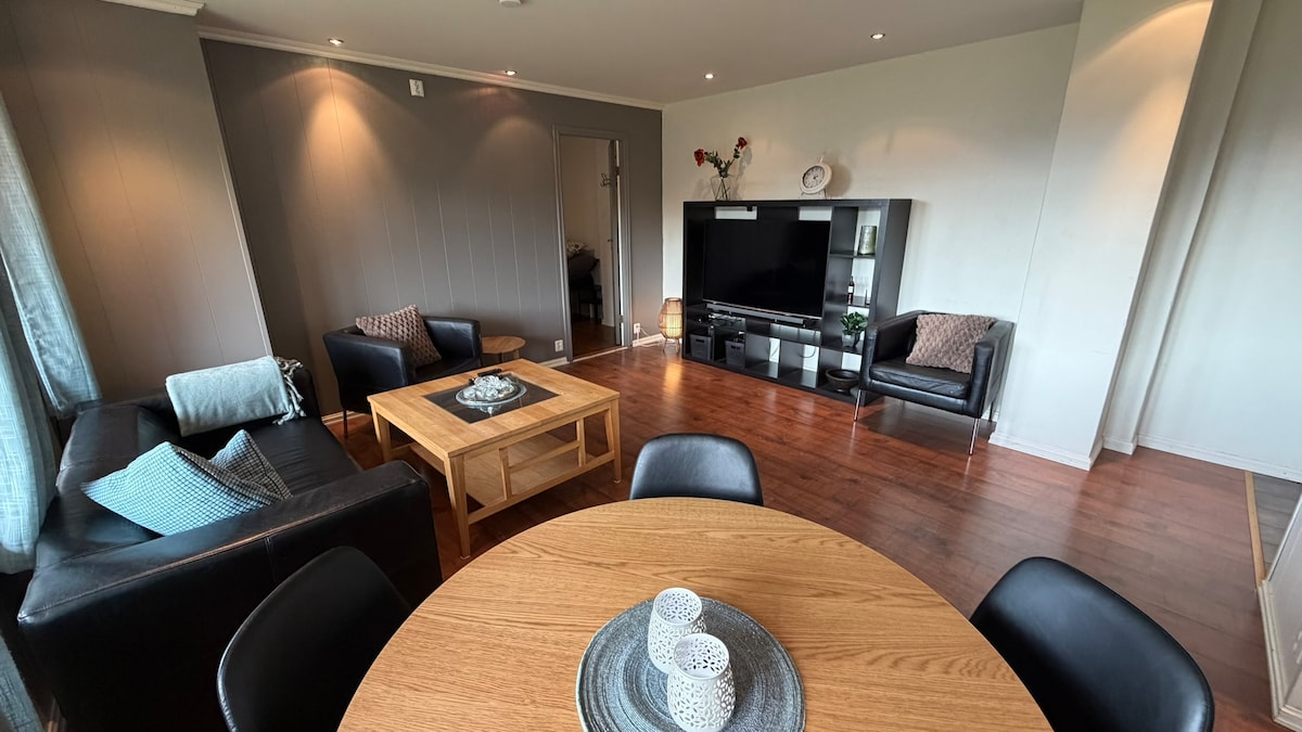 Καλώς ήρθατε στο Strandvegen 22B! Αυτό το πρόσφατα ανακαινισμένο διαμέρισμα συνδυάζει μινιμαλιστικό σχεδιασμό, φυσικό φως και μια ήρεμη ατμόσφαιρα – ιδανικό για χαλάρωση. Με κομψά έπιπλα, δύο άνετα κρεβάτια και πλήρως εξοπλισμένη κουζίνα, έχετε μια εμπειρία πολυτέλειας στην καθημερινή ζωή. Σε κεντρική τοποθεσία σε κοντινή απόσταση από τα καλύτερα καφέ, εστιατόρια και πολιτιστικές προσφορές της πόλης, αλλά μια ήσυχη όαση. 500 μέτρα από το Amfi Mall και το Steinkjer Kulturhus. Μια τέλεια βάση για την επόμενη διαμονή σας!