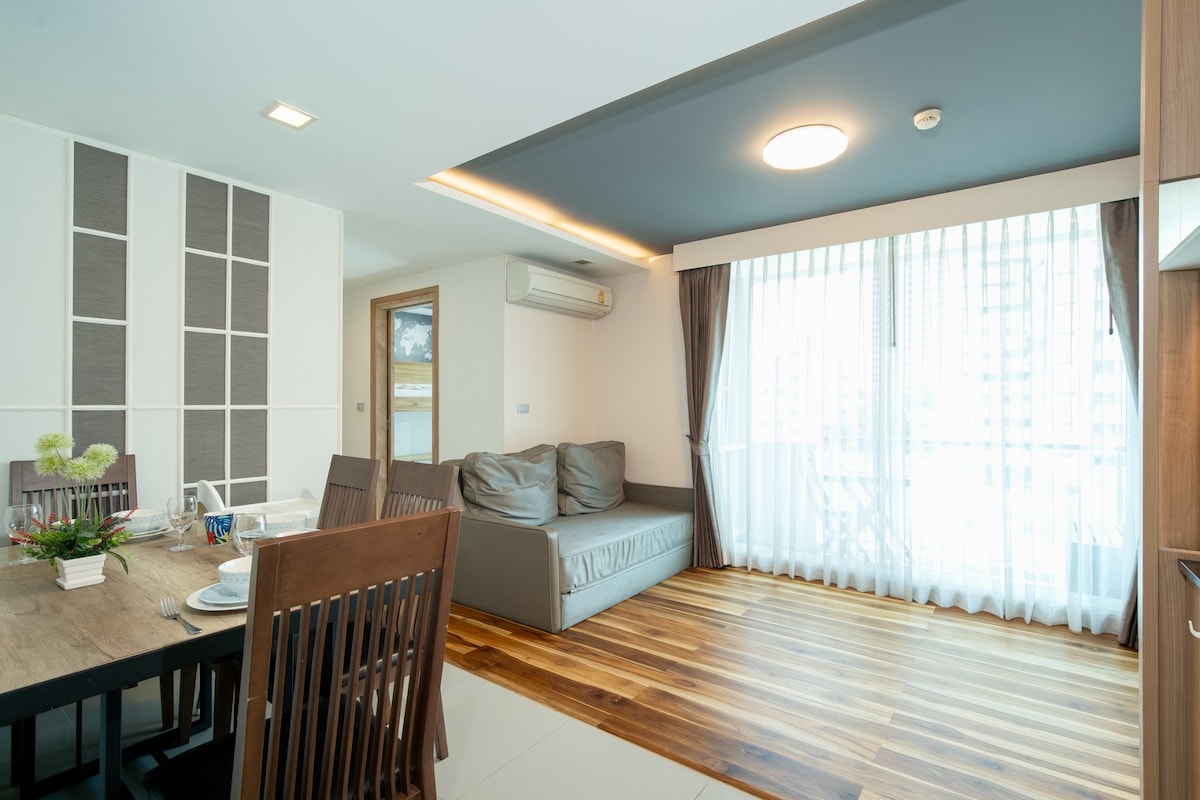 Αυτό το πολύ μεγάλο πολυτελές διαμέρισμα 3 υπνοδωματίων με υπηρεσίες ξενοδοχείου βρίσκεται στην καρδιά του Sukhumvit Soi 11 — τον πιο συναρπαστικό δρόμο της Μπανγκόκ για νυχτερινή ζωή, φαγητό και μπαρ στην ταράτσα. Ευρύχωρο, κομψό, συνδυάζει την ιδιωτικότητα ενός καταλύματος με την ποιότητα και την εξυπηρέτηση ενός μπουτίκ ξενοδοχείου. Απολαύστε καθημερινή καθαριότητα, υπηρεσία δωματίου, υπηρεσία προσωπικής εξυπηρέτησης και πρόσβαση σε πισίνα στον τελευταίο όροφο και 24ωρο γυμναστήριο. Μόλις 5–10 λεπτά για το Nana BTS, 7/11, ένα διεθνές σούπερ μάρκετ και εξαιρετικό street food.