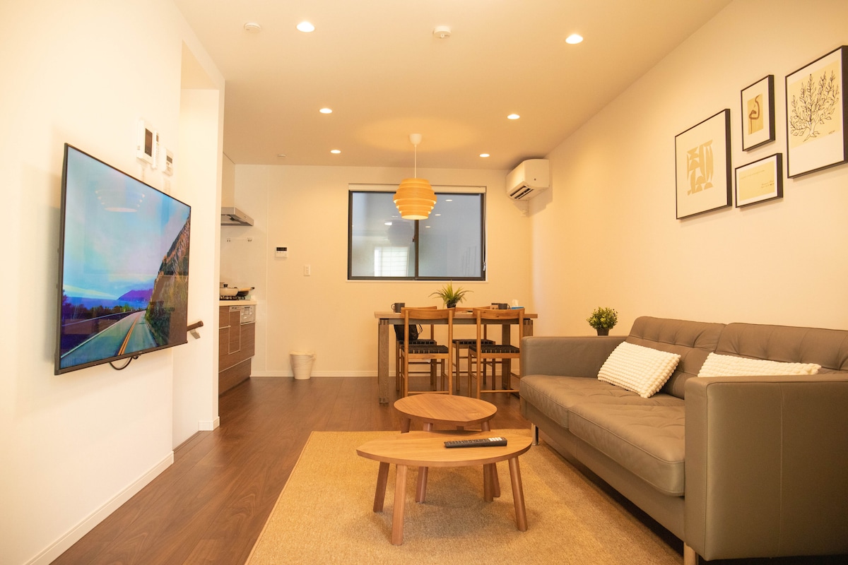 * Χωρίς προμήθεια υπηρεσιών της Airbnb * WiFi υψηλής ταχύτητας, Chromecast * Έξυπνες κλειδαριές για check-in χωρίς παρουσία οικοδεσπότη * Καλά εξοπλισμένη κουζίνα. * Παροχές κατάλληλες για οικογένειες:ー Βρεφική κούνια, κάθισμα φαγητού, παιδικά σερβίτσια, DVD, παιχνίδια. * Κλιματισμός και θέρμανση σε όλα τα δωμάτια κ.λπ. ** Κοντινότερος σταθμός Στάση Juso ... 7 λεπτά με τα πόδια (επίπεδος δρόμος) ** Πρόσβαση Διεθνές Αεροδρόμιο Kansai (KIX)... περίπου 90 λεπτά με το τρένο Σταθμός Shin-Osaka... 8 λεπτά με το τρένο Κιότο... περίπου 40 λεπτά με το τρένο *Χωρίς μεταφορά Kobe ... περίπου 25 λεπτά με το τρένο *Χωρίς μεταφορά
