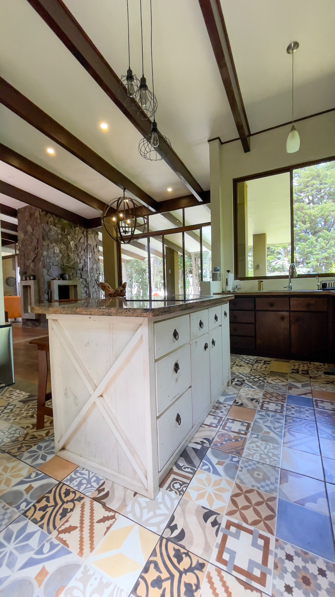 Spectacular and modern mountain house where you can enjoy a large jacuzzi with steam bath, wood-burning fireplace, BBQ, TV room, library, board games, will be some of the amenities that will accompany you during your stay, Ideal for resting in a beautiful and spacious place with fresh air, spectacular views of the mountains and agricultural fields. Located in Zarcero, Alajuela. Fully equipped. Excellent internet connection for telework.