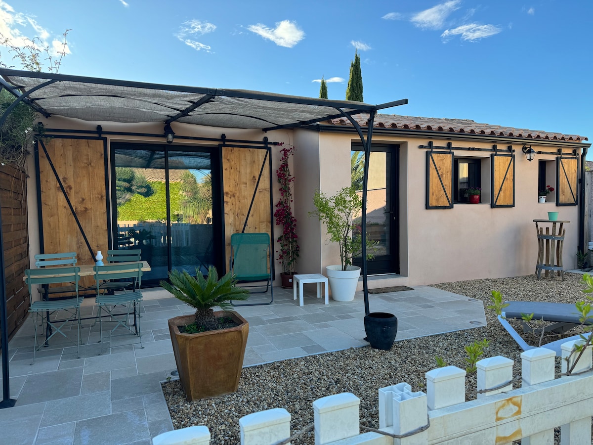 Venez découvrir ma maison au coeur du village pittoresque de Thézan lès Béziers. La bâtisse est traversante profitant d'une belle luminosité grâce à son exposition plein SUD. La pièce de vie est ouverte sur le jardin et comme toute la maison elle est climatisée. Vous pourrez d'ailleurs profiter d'une grande terrasse pour réaliser des bons repas en famille. Le jardin est un vrai havre de paix dans lequel vous pourrez découvrir des petits coins de repos isolés et ombragés.