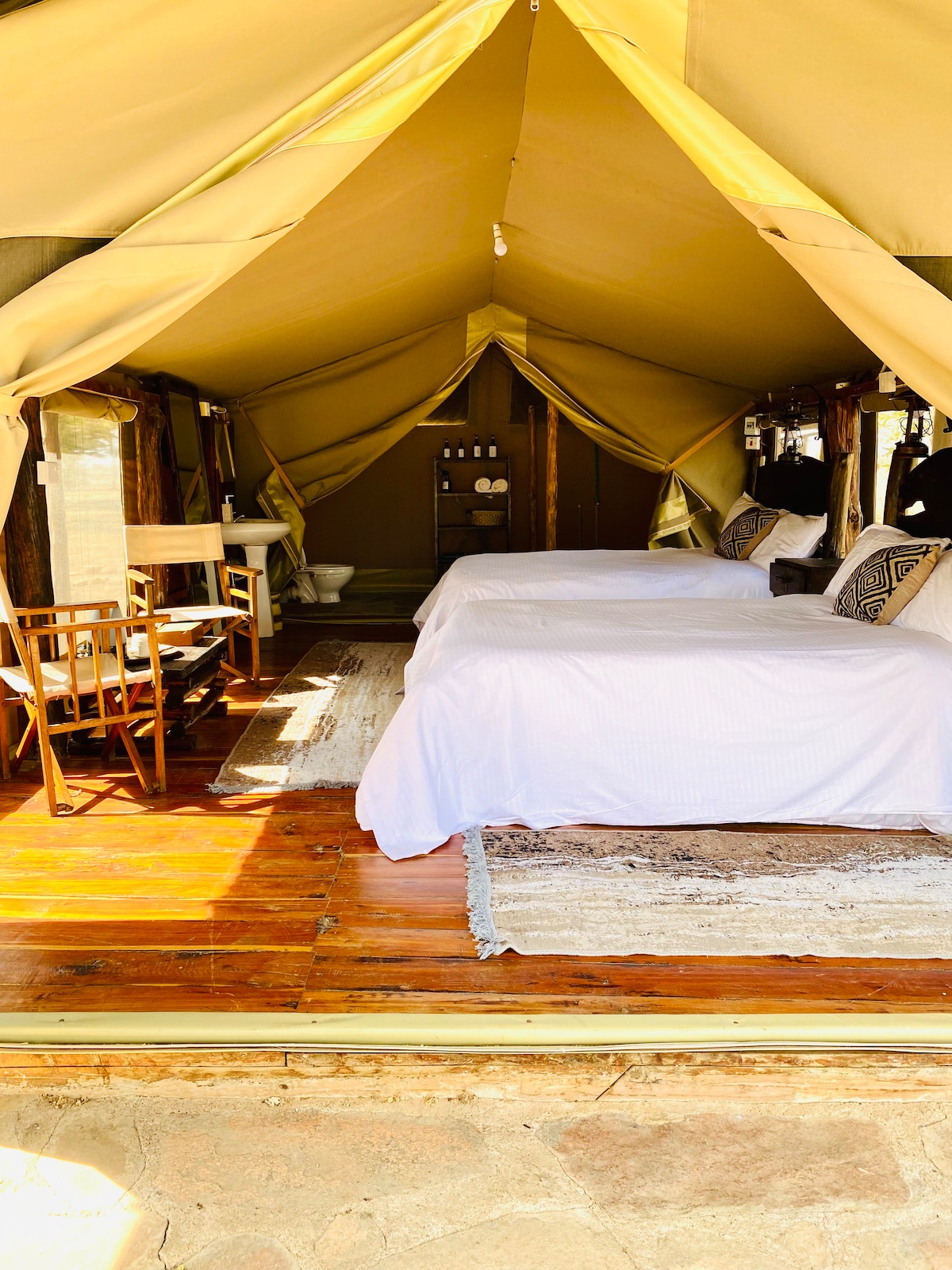 Προσφέρουμε μεγάλο περίπατο σε σκηνή με ένα διπλό ή δύο μονά κρεβάτια με θέα στις γραφικές όχθες της λίμνης Elementaita. Οι σκηνές βρίσκονται στο Oasis Camp, ένα σημείο για τους λάτρεις της φύσης και της περιπέτειας. Μπορείτε να επιλέξετε την επιλογή με δυνατότητα προετοιμασίας γευμάτων ή να παραγγείλετε γεύματα από την κουζίνα μας.