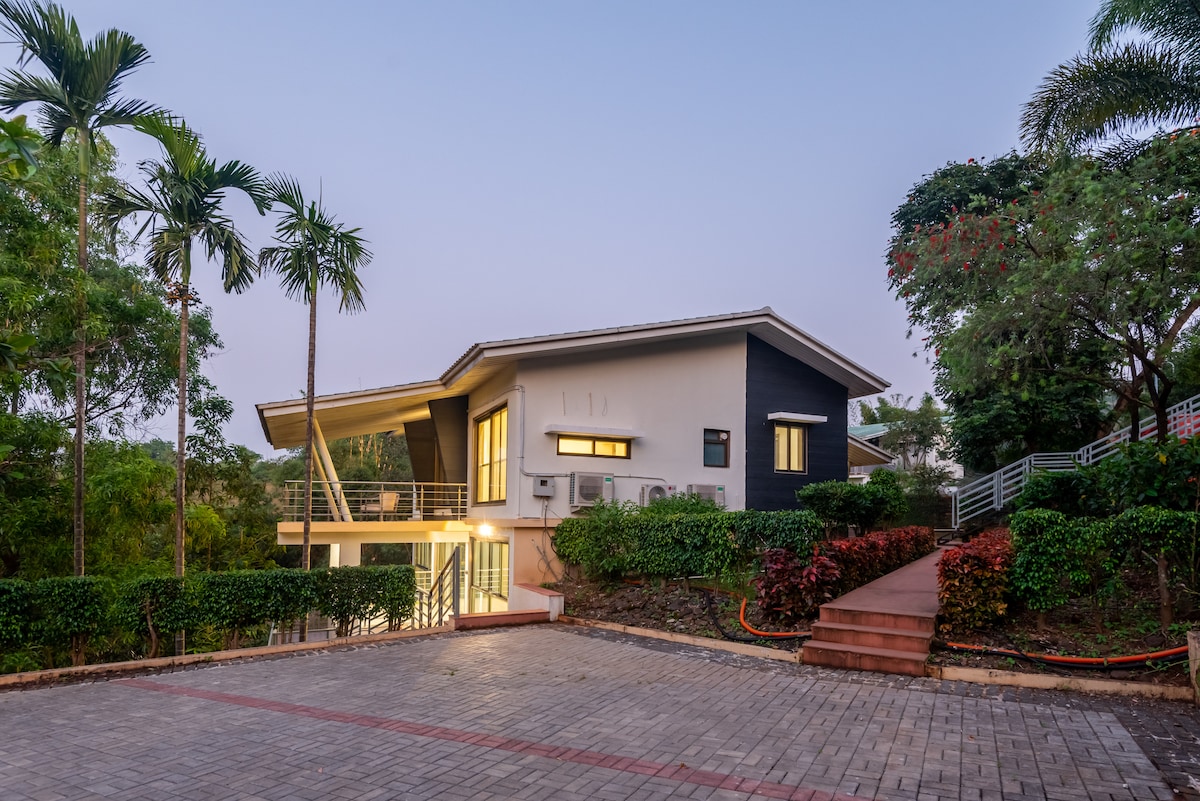 Set in the Western Ghats near Trimbakeshwar Temple, this premium villa offers two bedrooms with ensuite bathrooms, AC, TVs, and garden views. Enjoy a spacious living room, dining area, fully equipped kitchen, and kids’ room. Outdoors features a pool, gazebo, patio, landscaped lawn, and bonfire pit. Additional amenities include a spa, meditation & yoga space, conference hall, and in-house restaurant, blending comfort, nature, and heritage for a serene getaway.