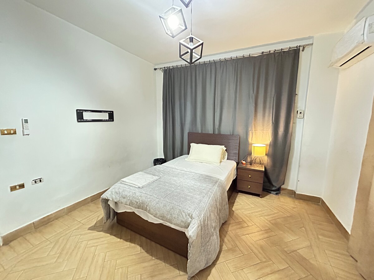 Άνετος ξενώνας στην καρδιά της Nasr City, που βρίσκεται ακριβώς στην οδό Abbas Al-Akkad. Περπατήστε μέχρι καταστήματα, καφετέριες, εμπορικά κέντρα και μέσα μαζικής μεταφοράς. Πλήρως επιπλωμένο με κλιματιστικά, γρήγορο WiFi και πρόσβαση σε ασανσέρ. Καθαρό, ήσυχο και ιδανικό για επαγγελματικά ή ψυχαγωγικά ταξίδια. Απολαύστε απόλυτη άνεση σε μία από τις πιο κεντρικές και ζωντανές περιοχές του Καΐρου.