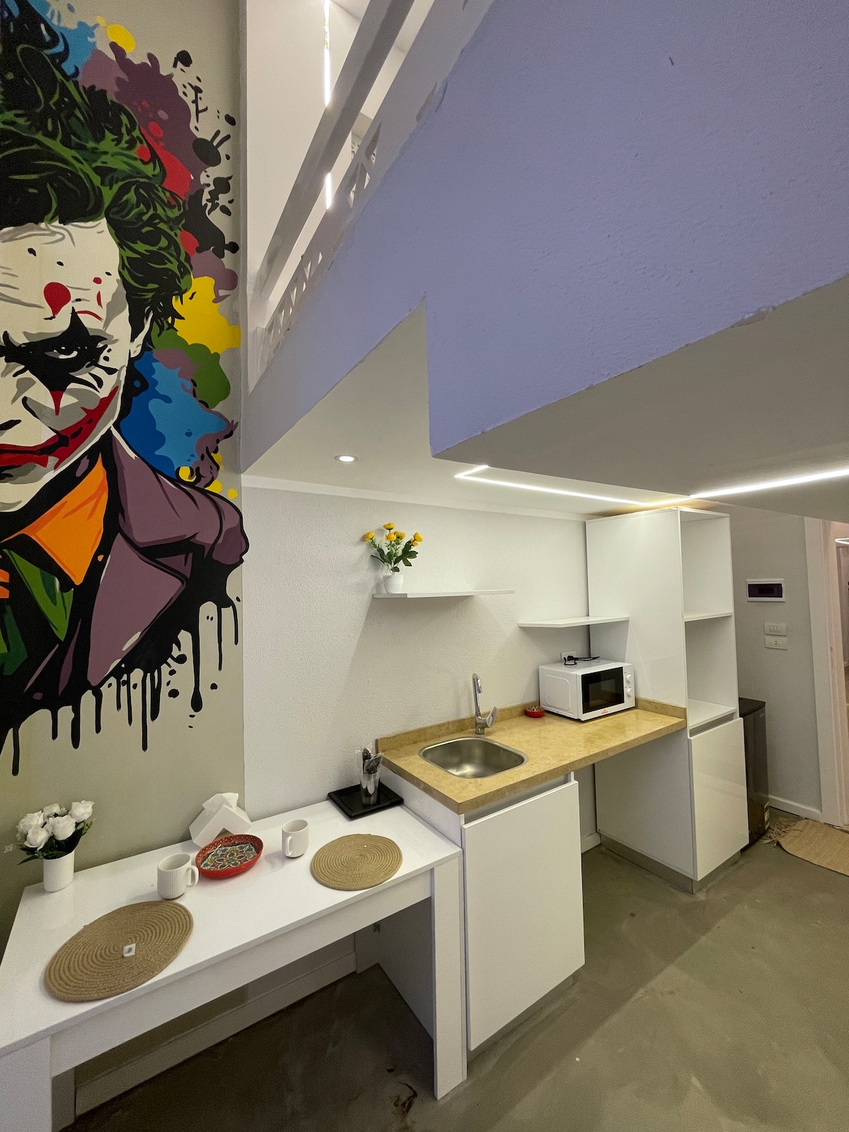 Αυτό το άνετο υπνοδωμάτιο στούντιο προσφέρει έναν τέλειο συνδυασμό άνεσης και λειτουργικότητας. Το δωμάτιο περιλαμβάνει ένα άνετο κρεβάτι, άφθονο χώρο ντουλάπας και μια μικρή τραπεζαρία ιδανική για ιδιωτικά γεύματα ή συνεδρίες εργασίας. Με άμεση πρόσβαση σε ένα ευρύχωρο υπαίθριο σαλόνι στην ταράτσα, το δωμάτιο προσφέρει μια μοναδική σύνδεση με τον εξωτερικό χώρο, καθιστώντας το ιδανικό για χαλάρωση μετά από μια κουραστική μέρα. Η απλή αλλά ζεστή διακόσμηση του δωματίου προσθέτει μια οικεία πινελιά, δημιουργώντας ένα γαλήνιο καταφύγιο μέσα στην πολυσύχναστη πόλη.