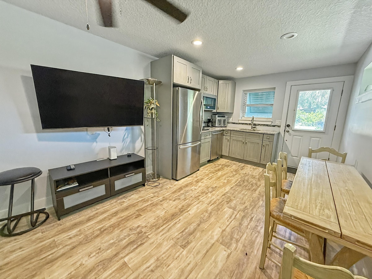 Your Island getaway awaits! You’ll love our cheerful, private access gem. Central location makes exploring a breeze. Less than 5min from historic downtown shops, restaurants, trails, jogging, golf, horse rides, surf, even skydiving! Enjoy a Queen bed, wifi, TV, small kitchenette, coffee station, laundry room w/Wash&Dryer, (baby Pack&Play), updated bathroom, work desk, covered parking, patio & more! Note: Verified ID's & a few positive (Airbnb or similar) reviews are all that's needed.