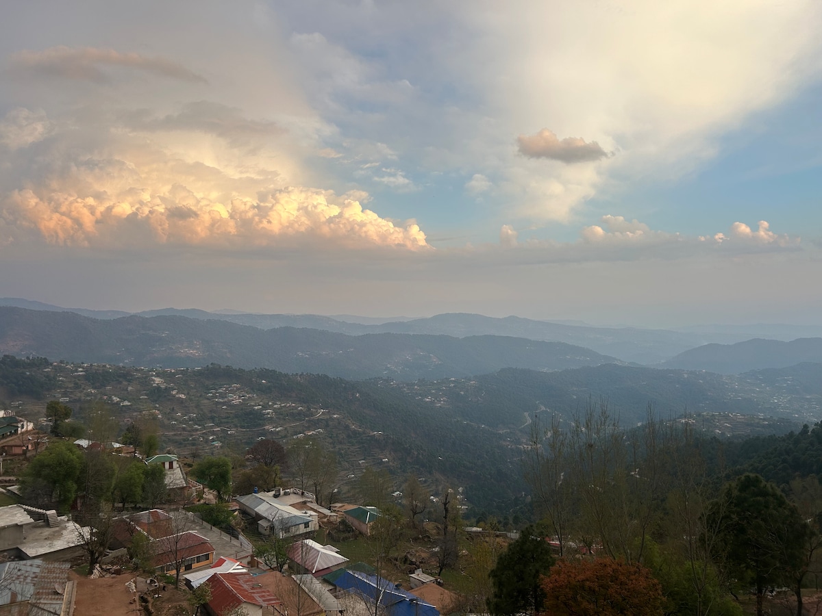 Απολαύστε ένα άνετο εξοχικό σπίτι 2 υπνοδωματίων στο Galiyat με όμορφη θέα στο δάσος και καθαρό βουνίσιο αέρα. Ιδανικό για ζευγάρια και οικογένειες, αυτό το εξοχικό φιλοξενεί έως 6 επισκέπτες με 2 υπνοδωμάτια και 2 επιπλέον στρώματα. Τα χαρακτηριστικά περιλαμβάνουν ιδιωτικό μπαλκόνι, θέρμανση, υπαίθρια τραπεζαρία, πλήρως εξοπλισμένη κουζίνα, γρήγορο Wi-Fi, τηλεόραση και άνετα κρεβάτια. Βρίσκεται στην Palak Road, Khaira Gali, κοντά στο Murree, μονοπάτια πεζοπορίας, καφετέριες και αξιοθέατα ιδανικά για μια ήσυχη απόδραση στη φύση.