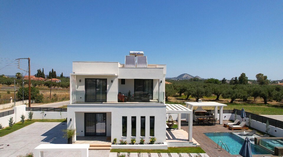 This newly built villa (June 2023) Gleandra offers the perfect blend of modern elegance & convenience. Situated near Laganas beach & just a short distance from the airport. It is ideally positioned for a memorable vacation. With 3 bedrooms & 3,5 bathrooms, it provides ample space for relaxation & comfort. You can unwind in the private pool and jacuzzi, enjoying the ultimate luxury experience. Immerse yourself in the beauty of Zakynthos and create unforgettable memories at Villa Gleandra.