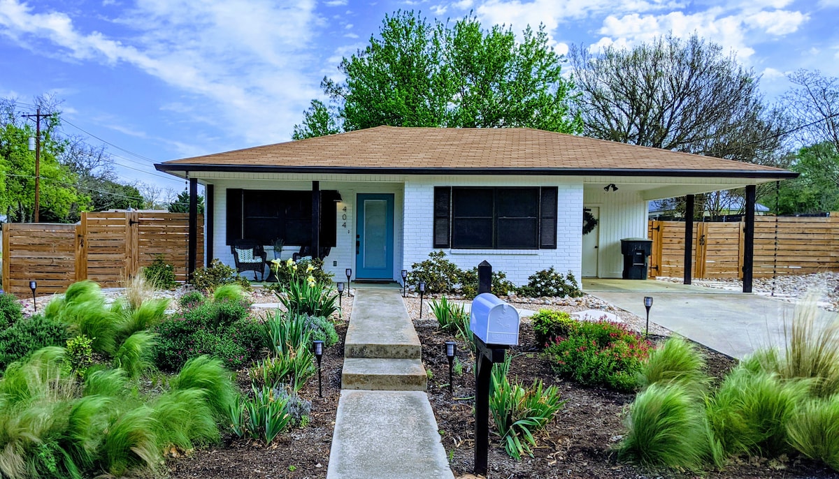 Αποδράστε στο Laurel Haus, ένα όμορφα ανακαινισμένο ενοικιαζόμενο κατάλυμα διακοπών μόλις δύο τετράγωνα από το κέντρο της πόλης Main Street στο Φρέντρικσμπεργκ του Τέξας. Αυτό το ανακαινισμένο σπίτι προσφέρει σύγχρονη πολυτέλεια και γοητεία. Το ευρύχωρο κατάλυμα φιλοξενεί 6 άτομα σε 2 υπνοδωμάτια + μια σοφίτα - δύο σουίτες με υπέρδιπλα κρεβάτια και δύο με δύο μονά κρεβάτια - και διαθέτει 2 πλήρη μπάνια. Χαλαρώστε στο αίθριο, μαζευτείτε γύρω από το τζάκι εξωτερικού χώρου ή χαλαρώστε αφού εξερευνήσετε τα οινοποιεία, τα καταστήματα και το Texas Hill Country του Φρέντρικσμπεργκ. Κάντε κράτηση τώρα για ένα αξέχαστο καταφύγιο στην χώρα του κρασιού στο Φρέντρικσμπεργκ!