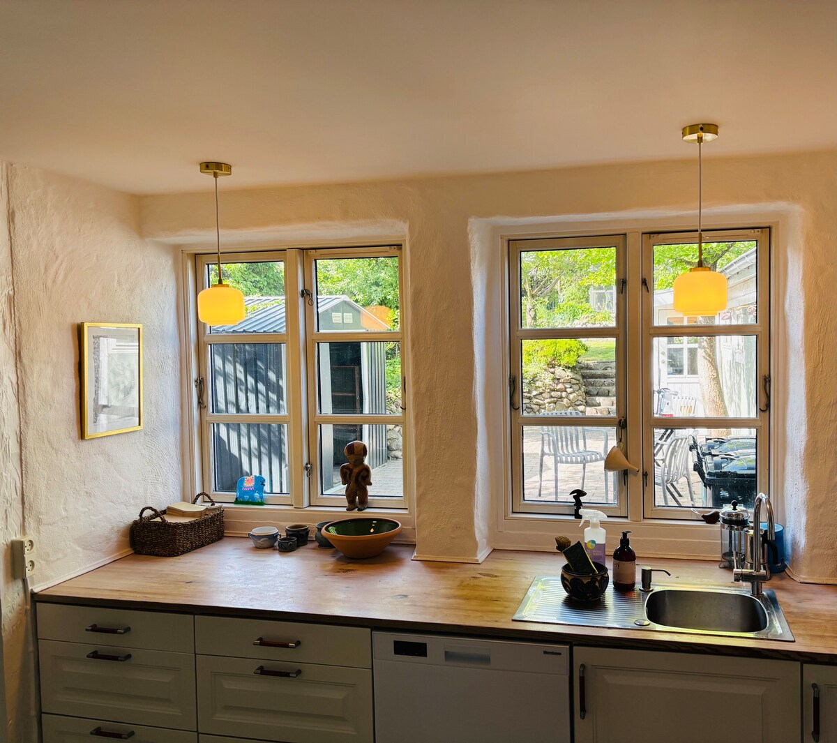 At bo i vores 75 kvadratmeter store ferielejlighed giver vores gæster en helt særlig fornemmelse af ferie. Når man åbner døre og vinduer, strømmer lydene ind fra skovens, havens og havets fugle. En duft af frisk havluft møder ens næsebor. Også lyset oplever vores gæster, som noget helt særligt. Specielt når aftensolen sender sine stråler ned på de omkringliggende øer, må man knibe sig i armen for at sikre sig, at man ikke drømmer.