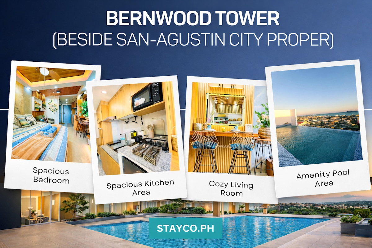 🏠 Χαλαρώστε σε αυτό το πρόσφατα ανακαινισμένο κατάλυμα 32 τ.μ. με θέα στον ποταμό Iloilo, με εύκολη πρόσβαση στην Esplanade. 🏠 Ιδανικό για οικογένειες ή παρέες, διαθέτει δύο υπνοδωμάτια, άνετο σαλόνι και τραπεζαρία, βασική κουζίνα με απαραίτητες συσκευές και σκεύη και μπάνιο με θερμαντικό σώμα και μπιντέ. 🏠 Μείνετε συνδεδεμένοι και διασκεδάστε με γρήγορο wifi και Disney+ 📍Οδηγίες: Μία πολυκατοικία Iloilo tower 2 Οδός R. Mapa, Mandurriao, Iloilo City