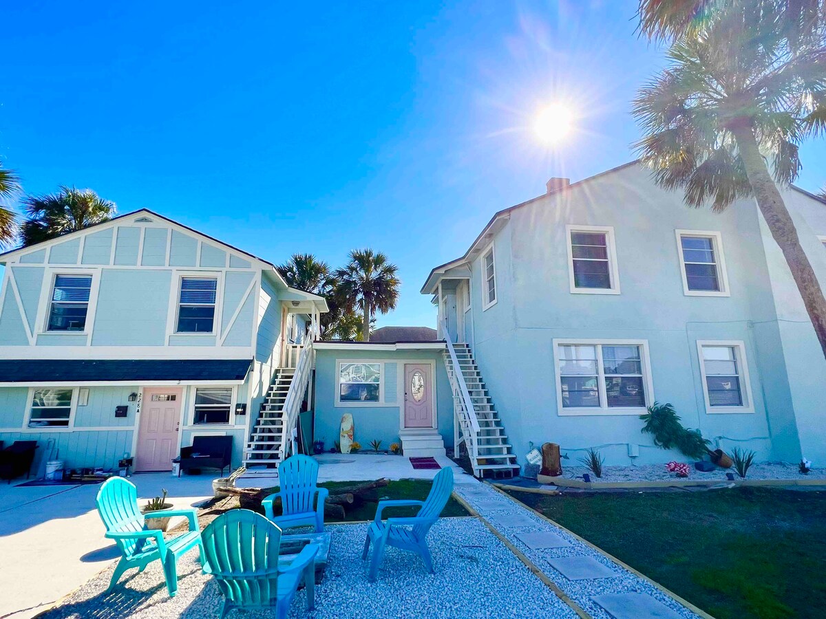 Come relax in this renovated, simple and stylish studio apartment across the street from the ocean. Perfect for solo or couple travelers. We provide everything you need so you can travel light. You are a 60 second walk away from the ocean. Right in between Jax Beach and Neptune Beach Town Center restaurants and entertainment! This unit is below the kitchen area of an above apartment. If foot noise is an issue for you, please let us help you find another perfect space.